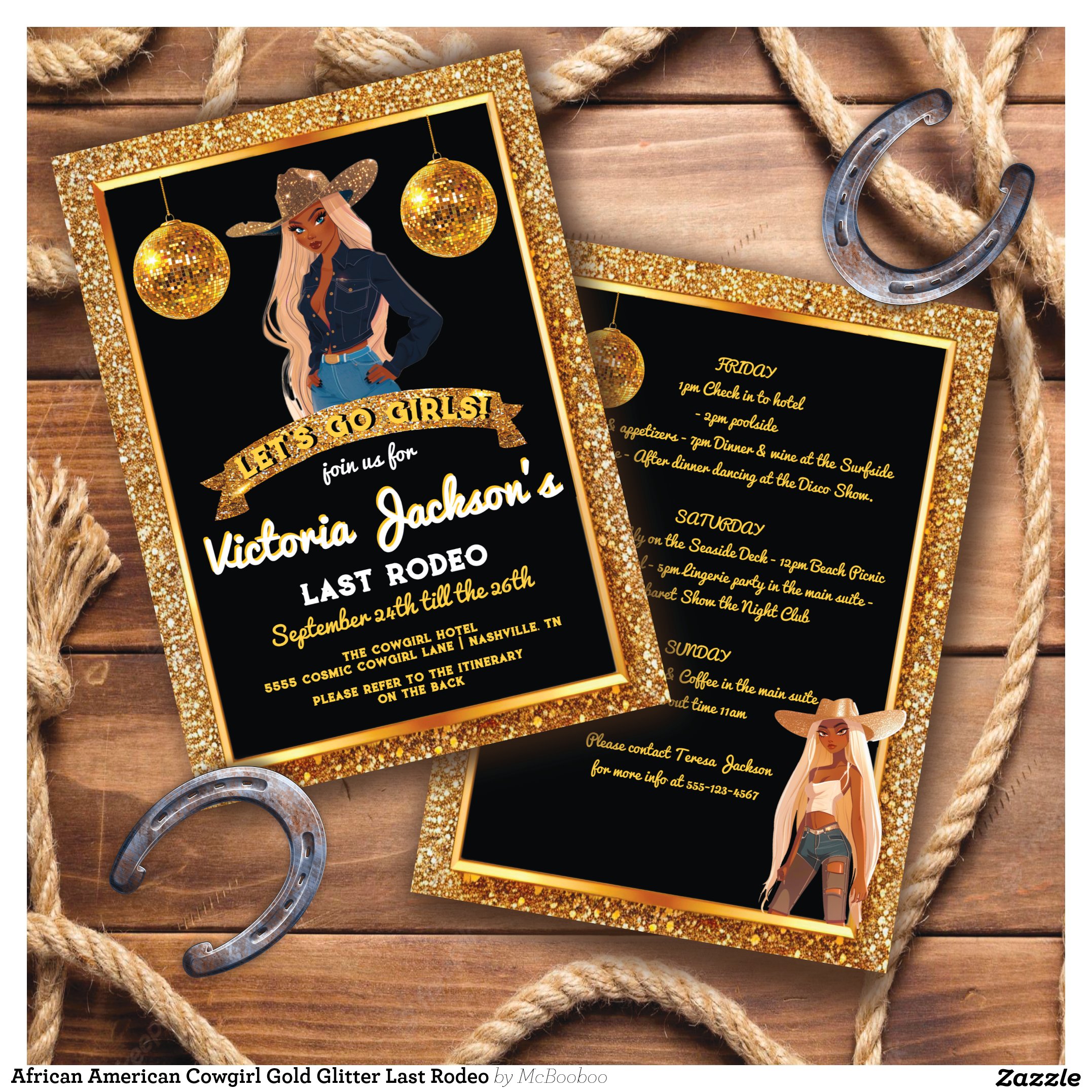 Be the first to review “African American Cowgirl Gold Glitter Last Rodeo Invitation”