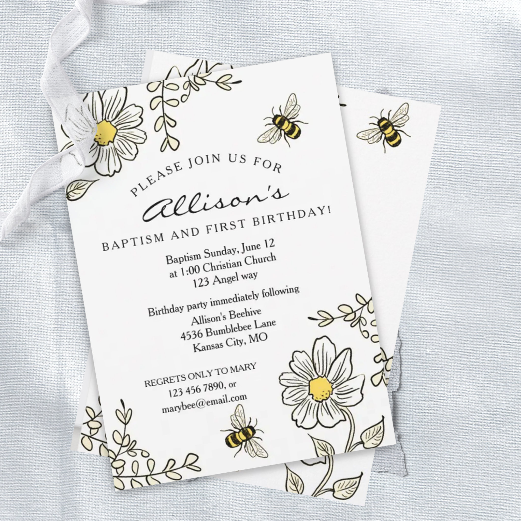 Baptism and First Birthday Sunny Bee Invitation