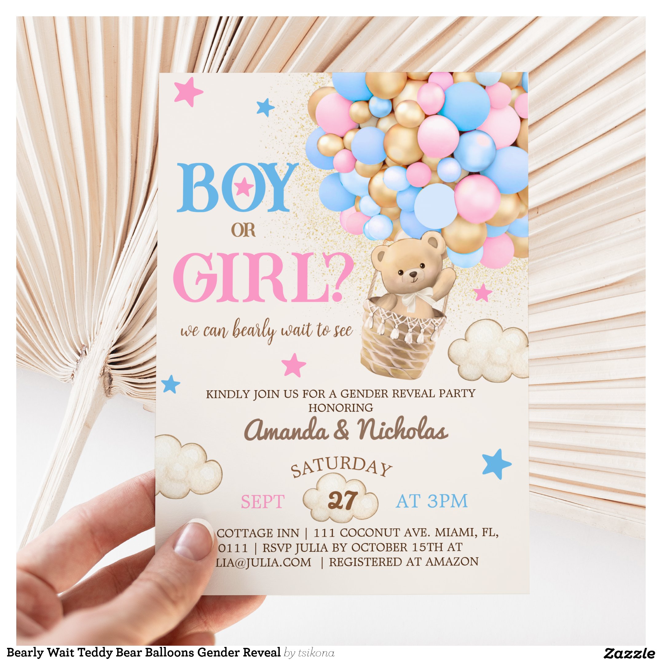 Bearly Wait Teddy Bear Balloons Gender Reveal Invitation