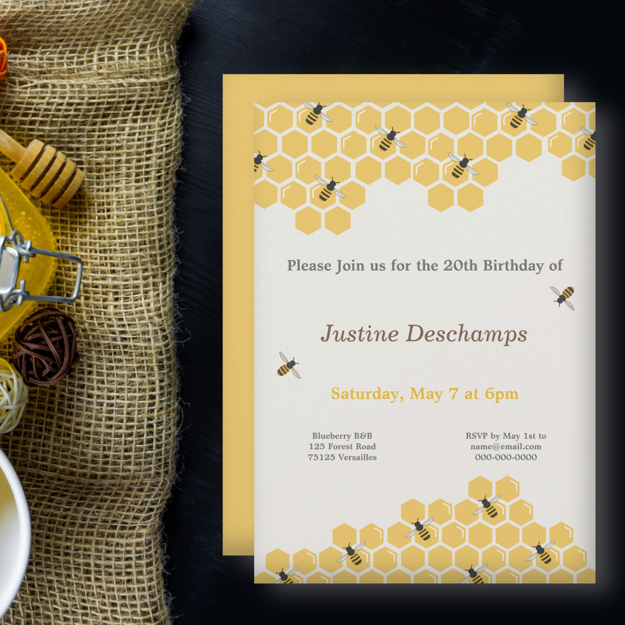 Be the first to review “Bee and Honeycomb Pattern Birthday Invitation”