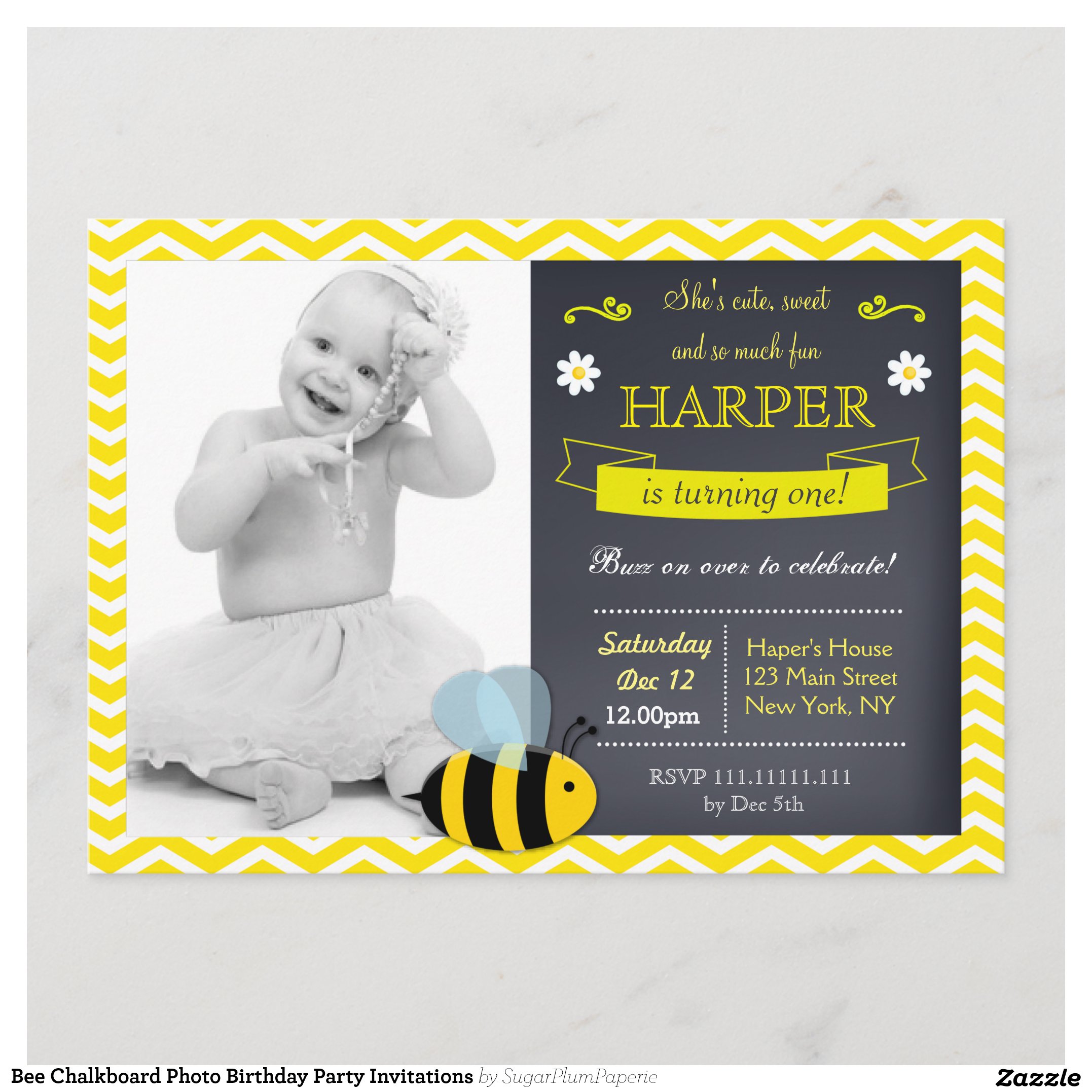 Be the first to review “Bee Chalkboard Photo Birthday Party Invitations”