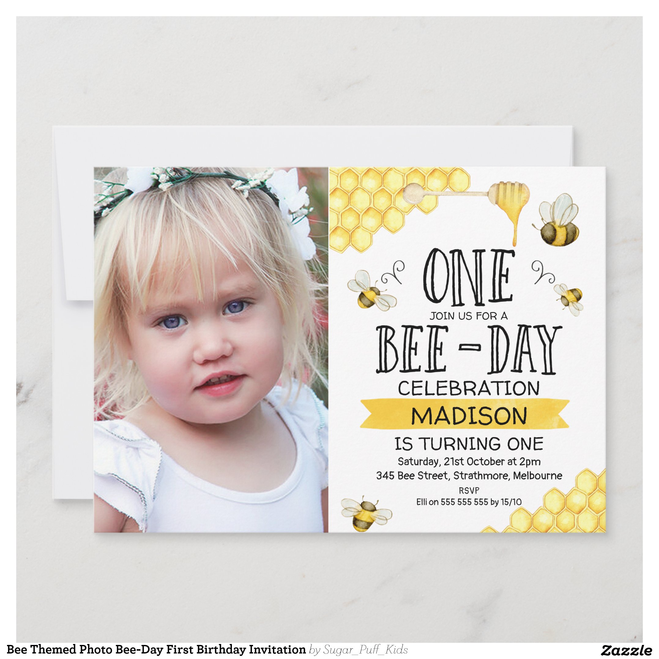 Bee Themed Photo Bee-Day First Birthday Invitation