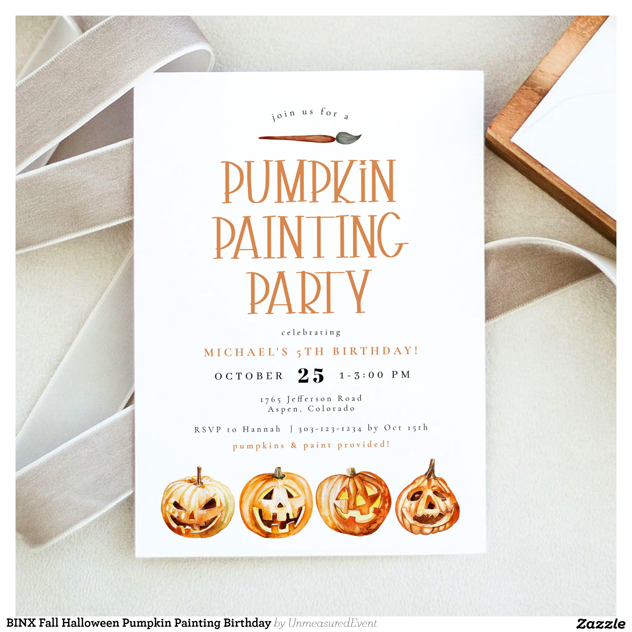 BINX Fall Halloween Pumpkin Painting Birthday Invitation