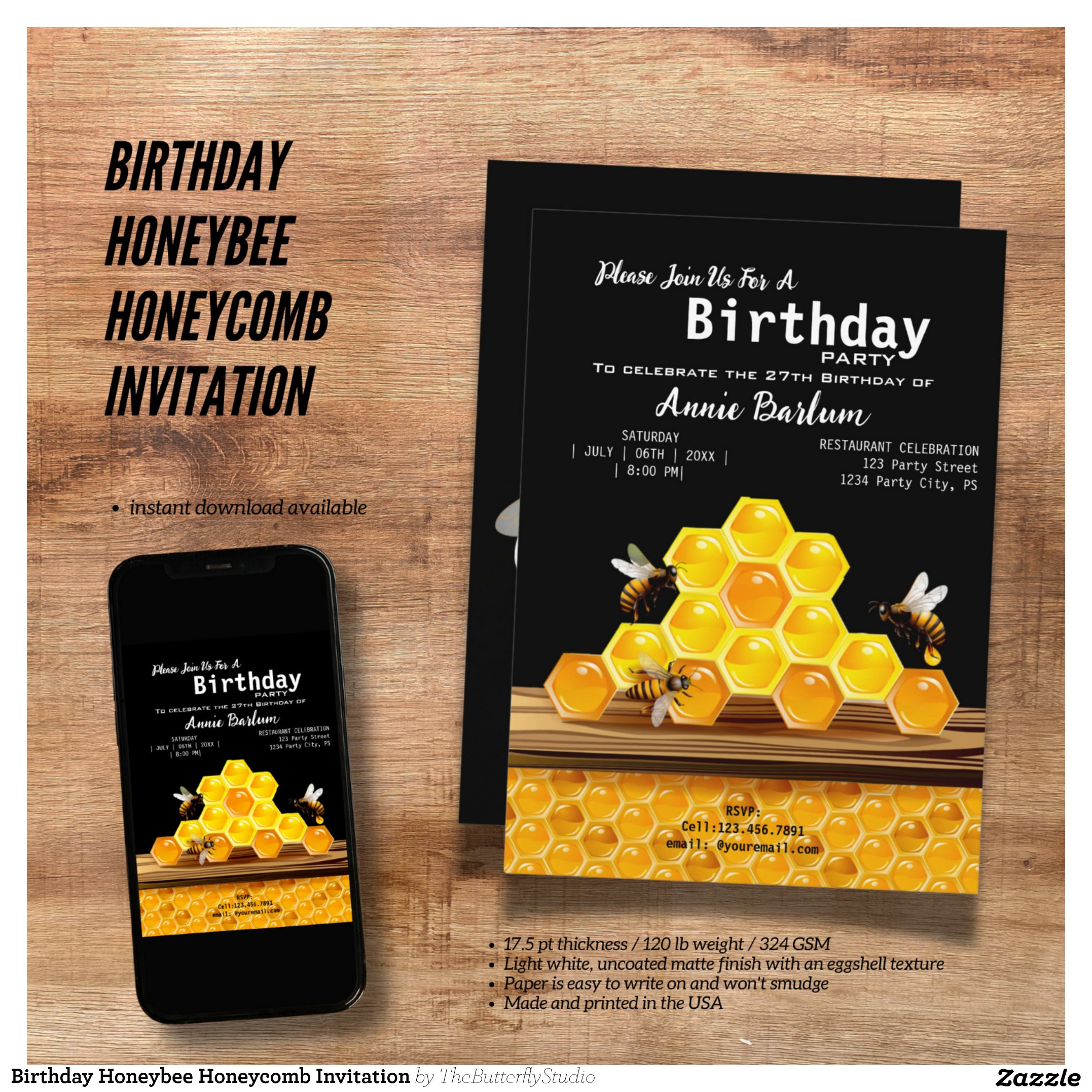 Be the first to review “Birthday Honeybee Honeycomb Invitation”