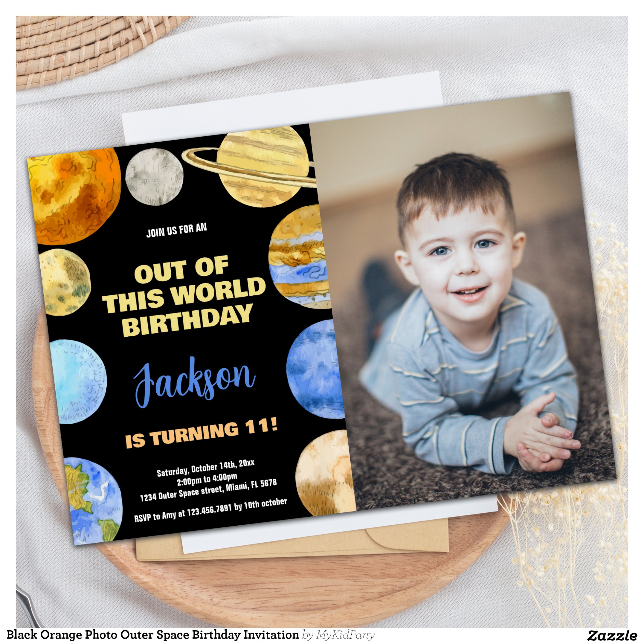 Be the first to review “Black Orange Photo Outer Space Birthday Invitation”