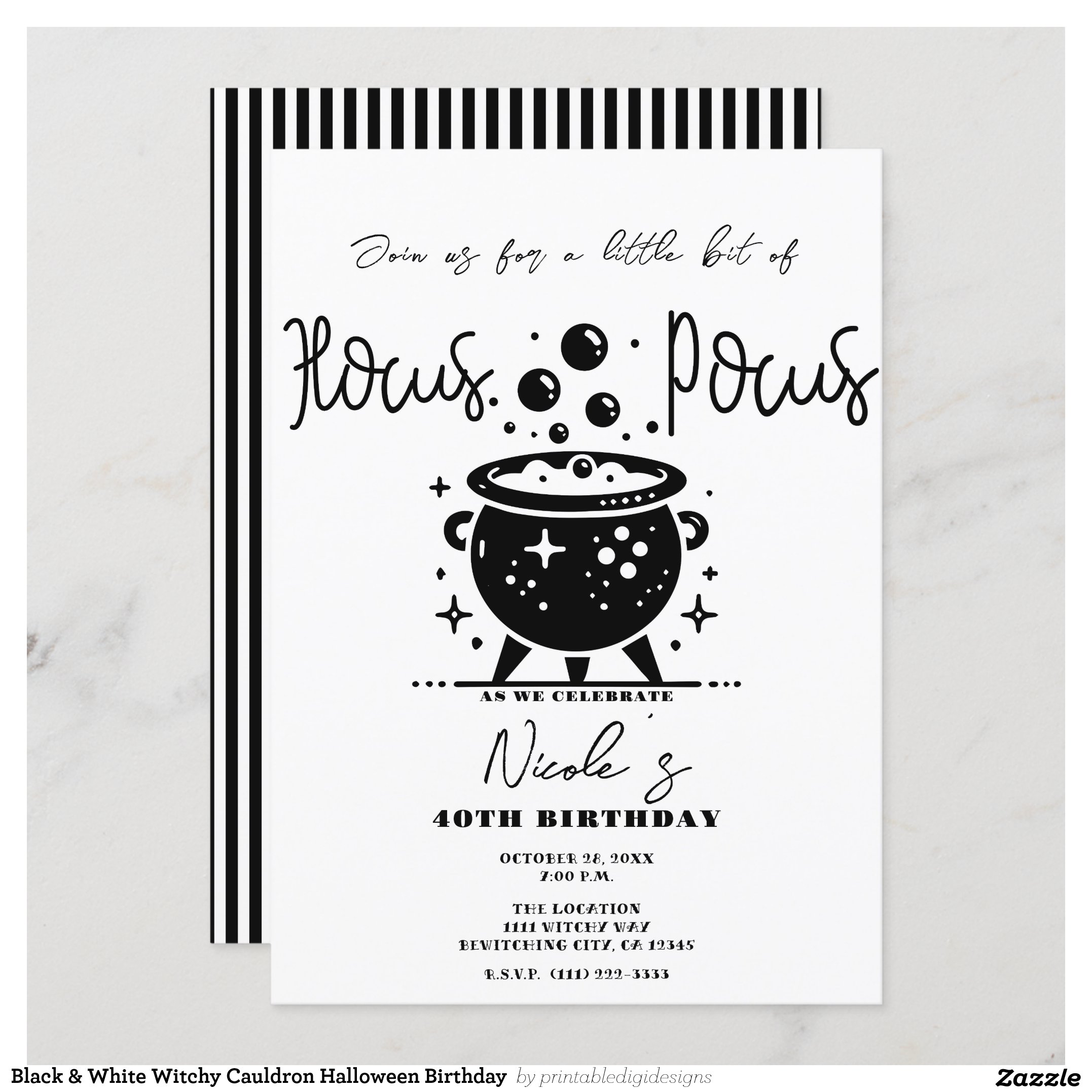 Be the first to review “Black & White Witchy Cauldron Halloween Birthday Invitation”