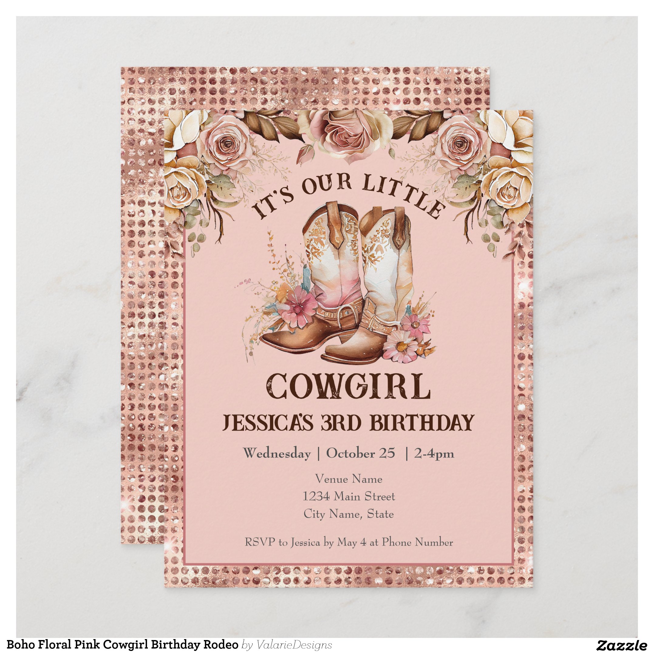 Boho Floral Pink Cowgirl Birthday Rodeo Invitation