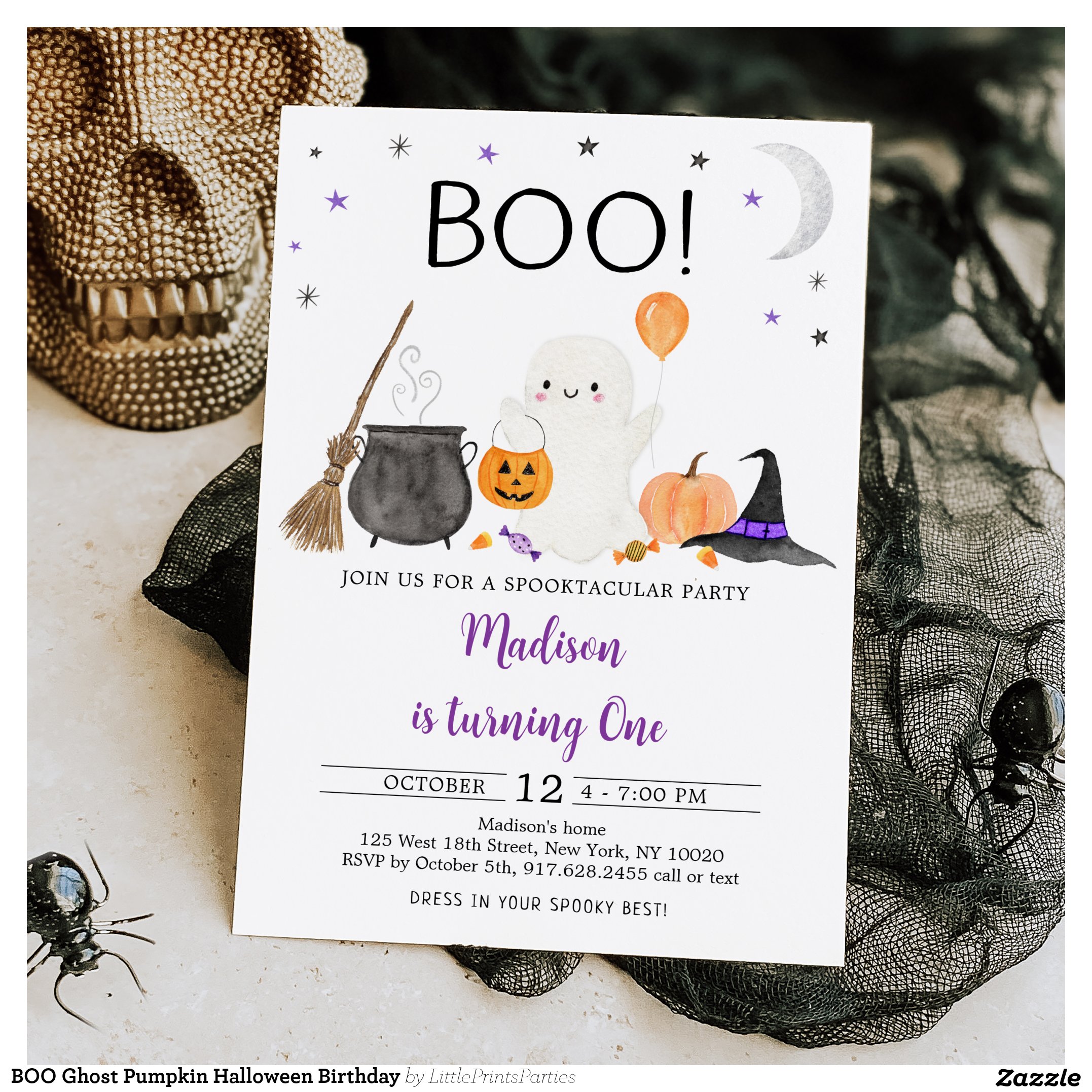 BOO Ghost Pumpkin Halloween Birthday Invitation