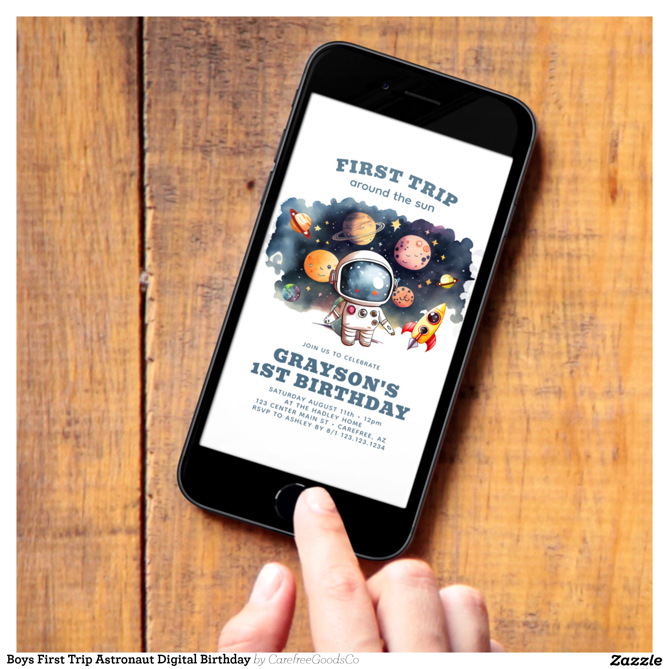 Boys First Trip Astronaut Digital Birthday Invitation