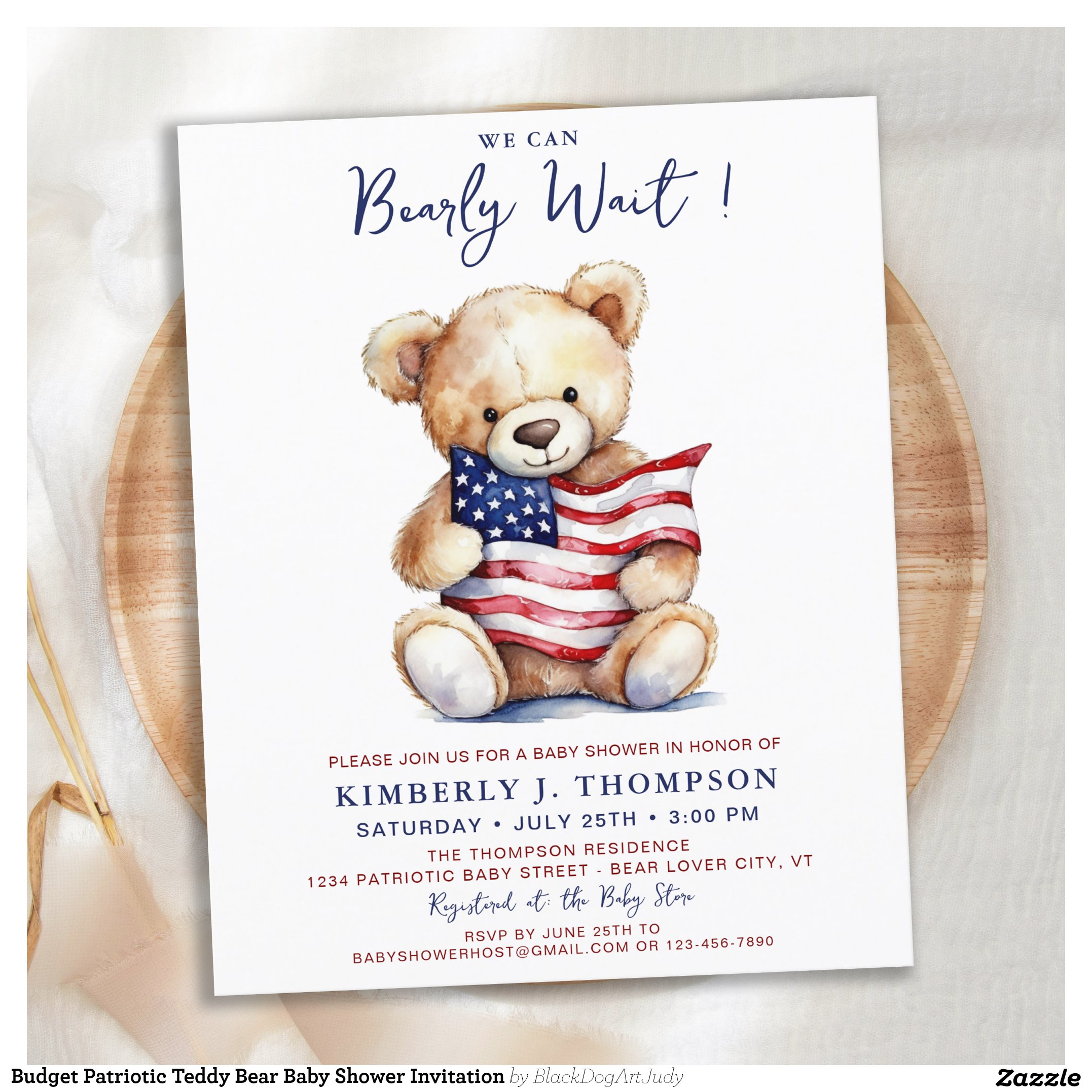 Budget Patriotic Teddy Bear Baby Shower Invitation