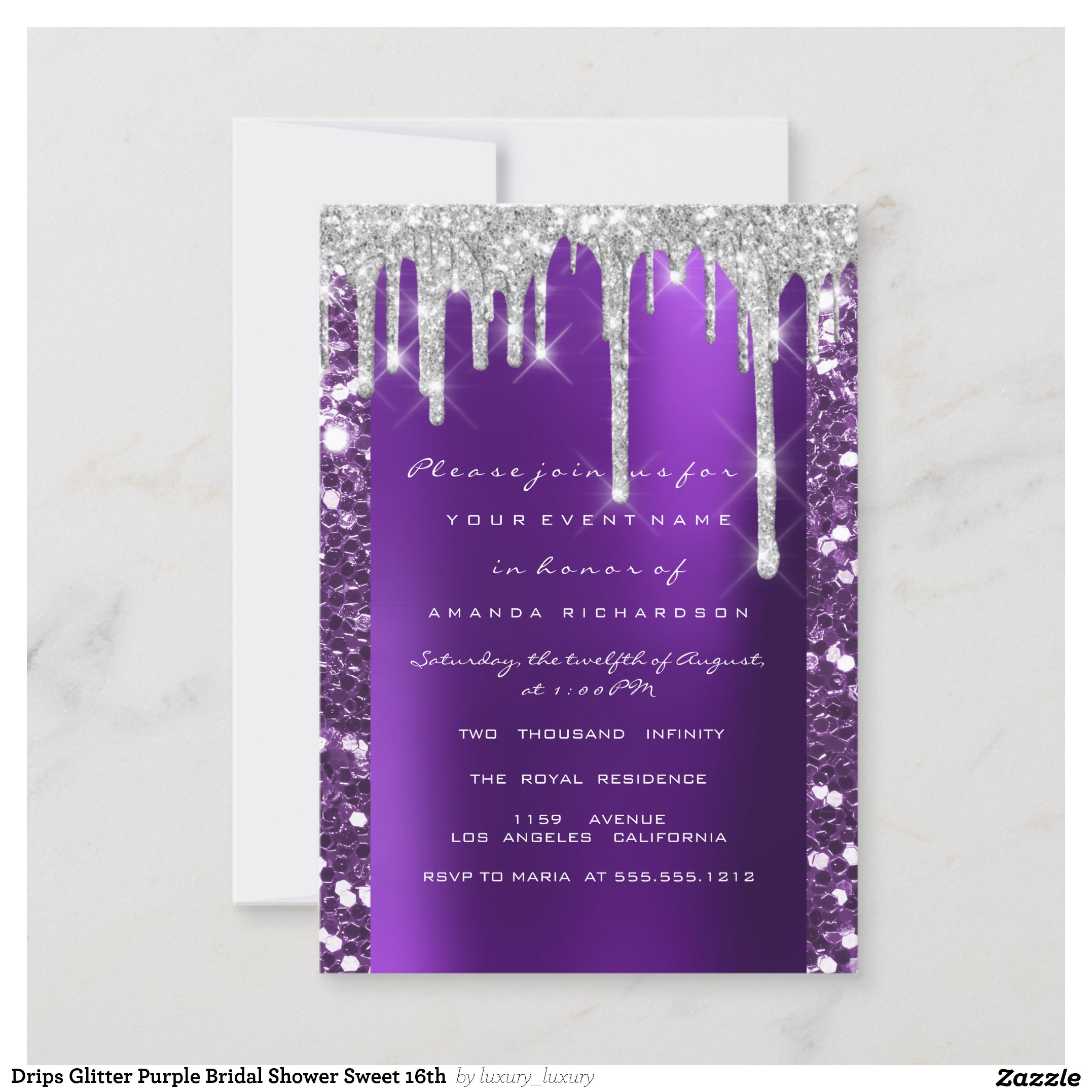 Drips Glitter Purple Bridal Shower Sweet 16th Invitation