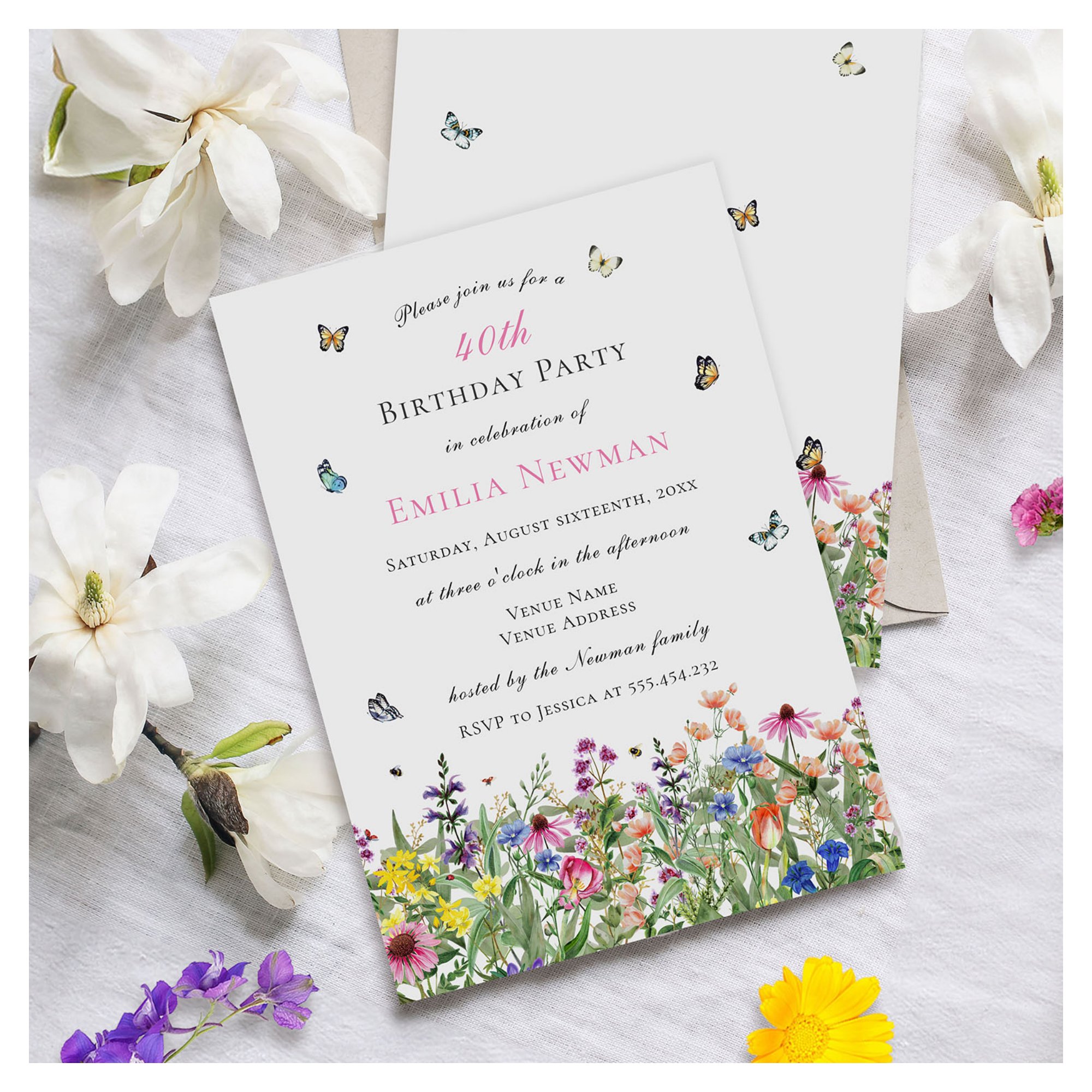 Elegant Floral 40th Birthday Party Invitation