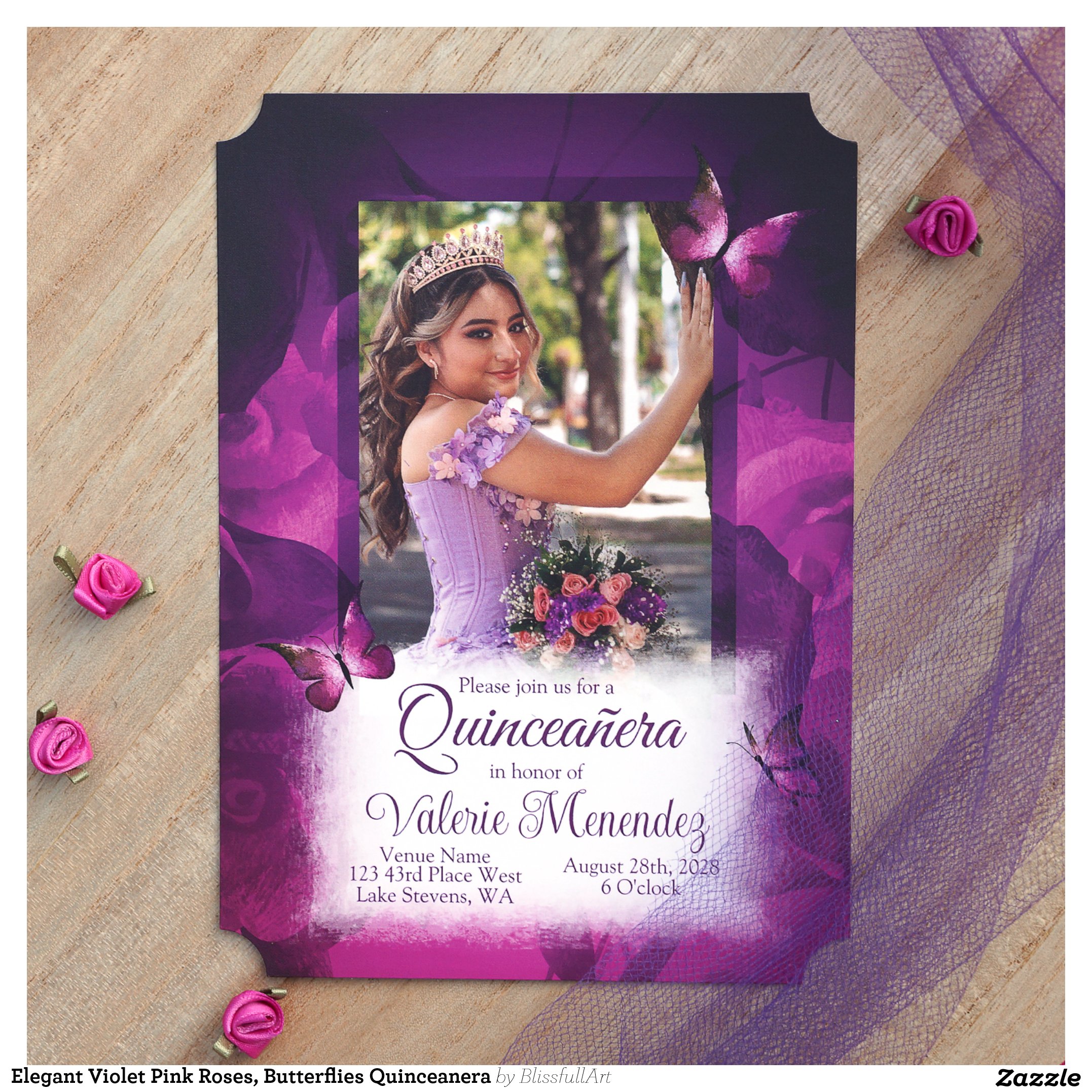 Be the first to review “Elegant Violet Pink Roses, Butterflies Quinceanera Invitation”
