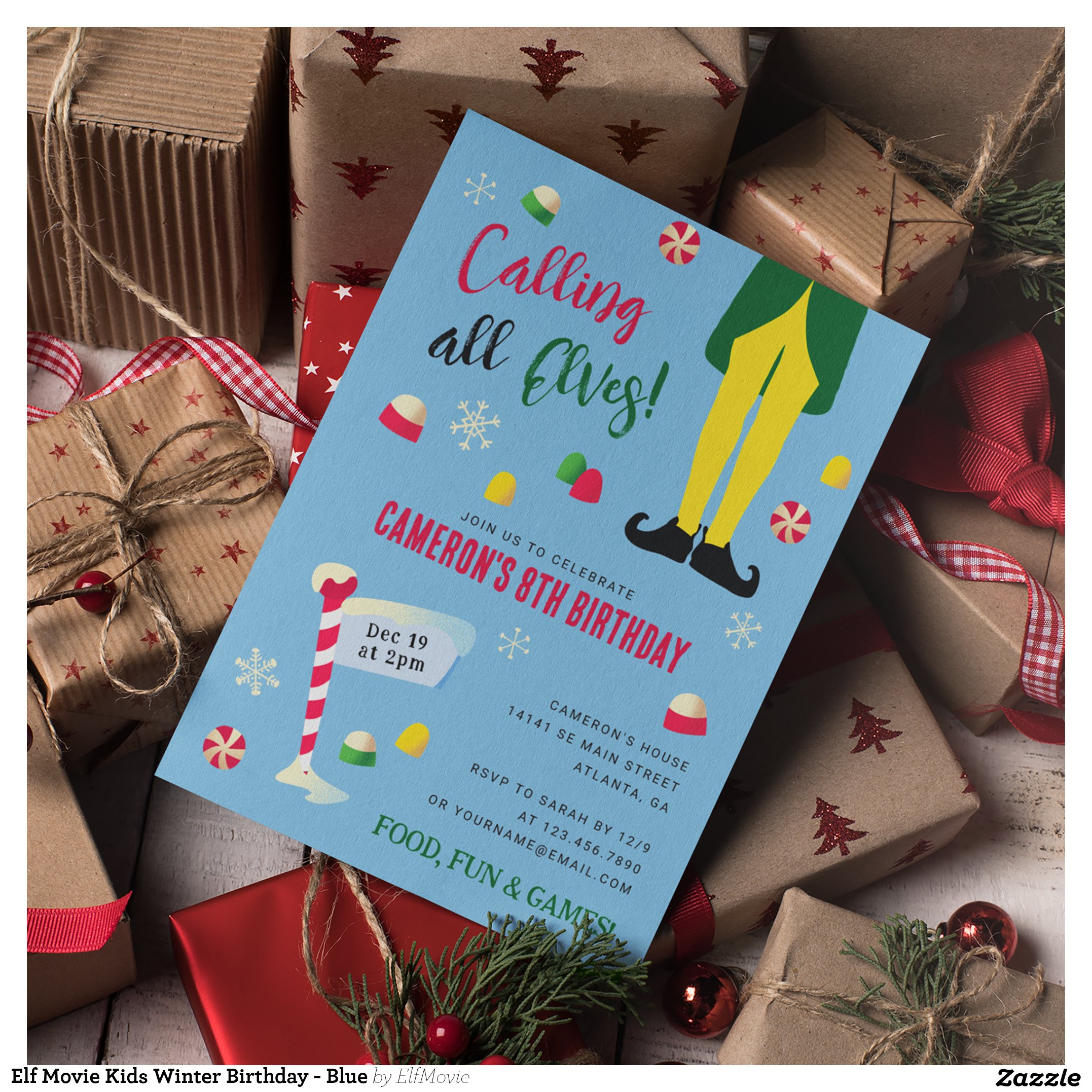 Elf Movie Kids Winter Birthday – Blue Invitation