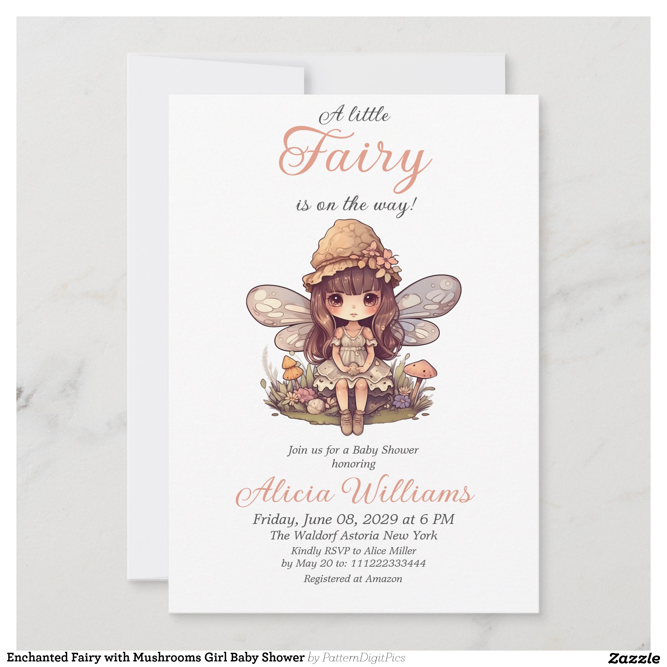 Enchanted Fairy with Mushrooms Girl Baby Shower Invitation
