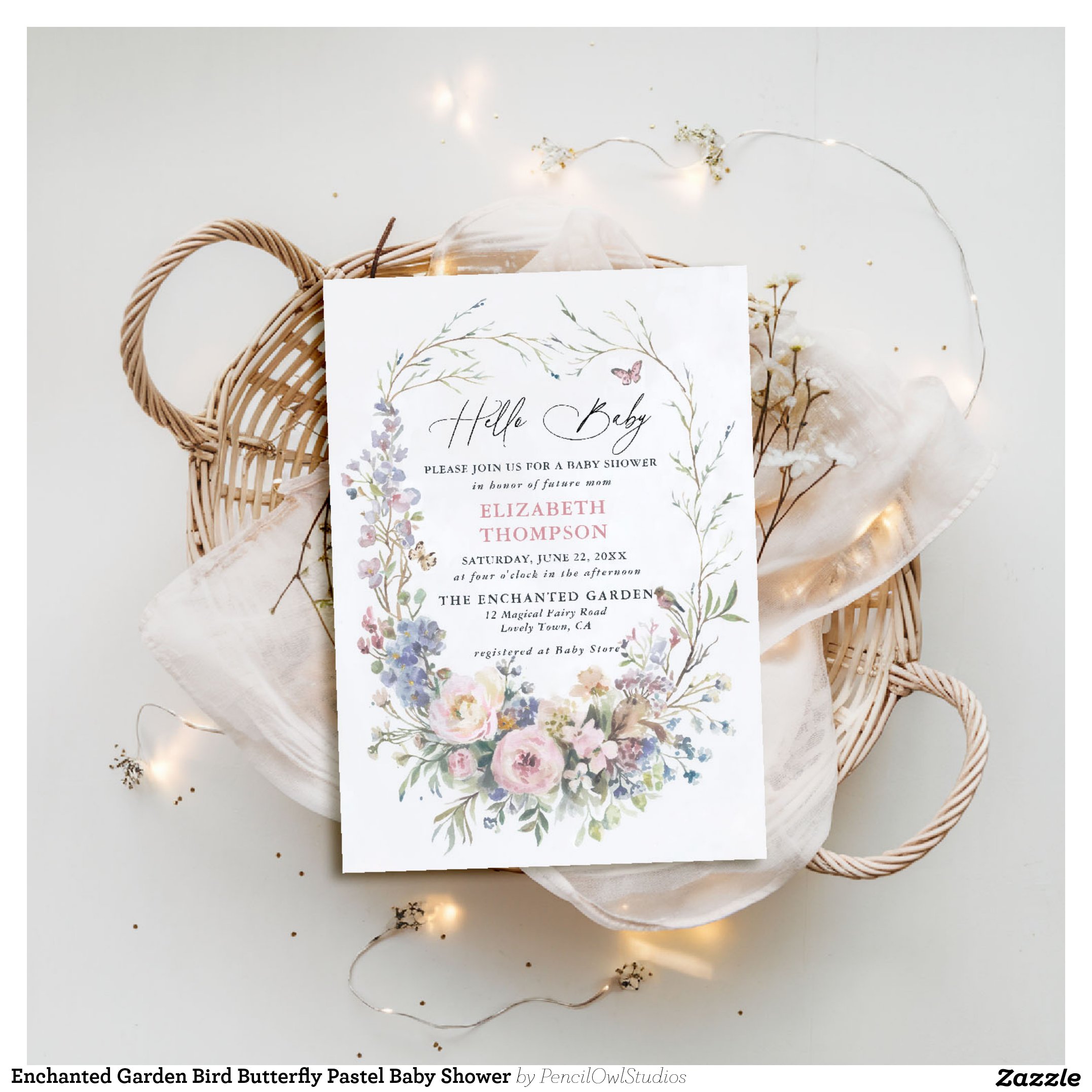Be the first to review “Enchanted Garden Bird Butterfly Pastel Baby Shower Invitation”