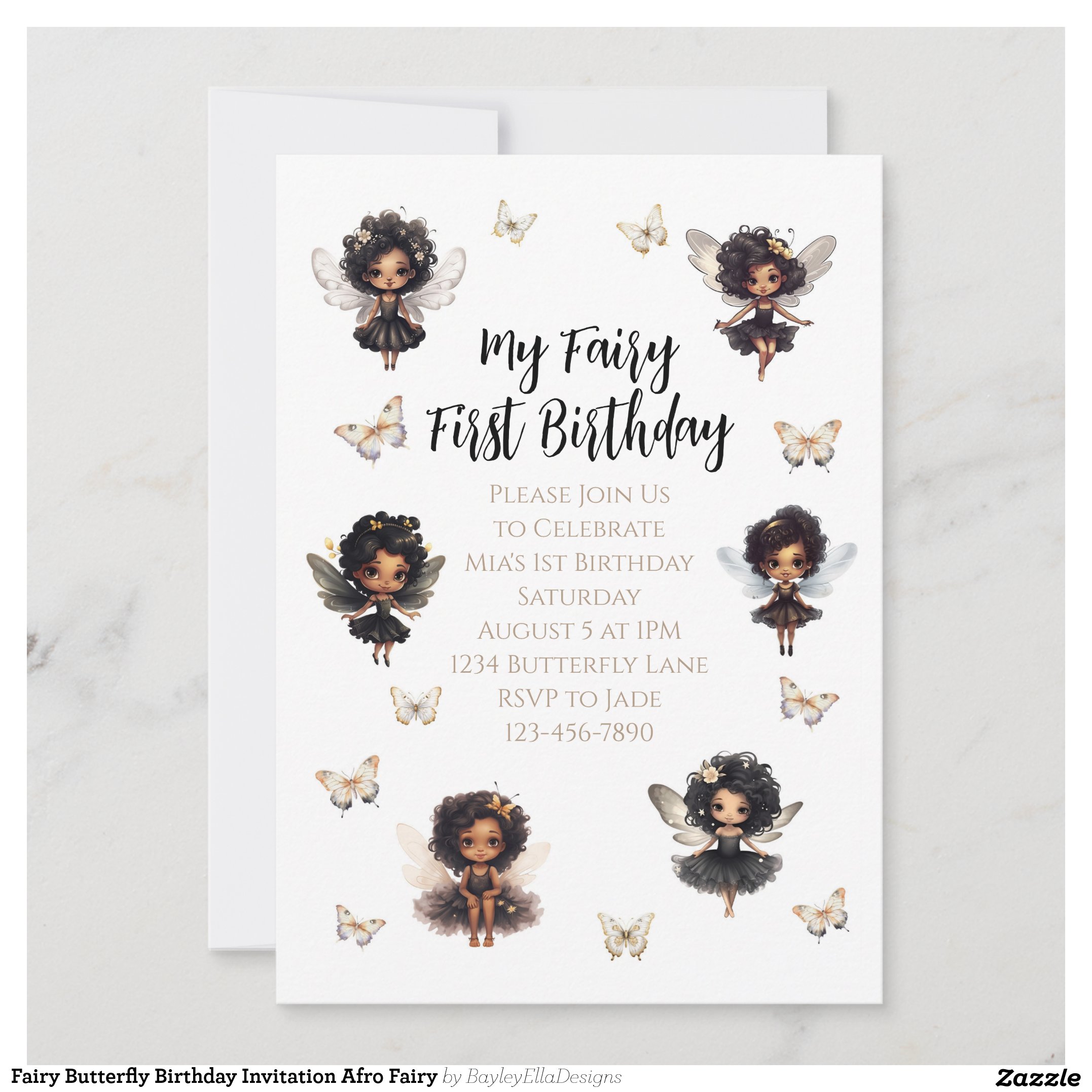 Fairy Butterfly Birthday Invitation Afro Fairy
