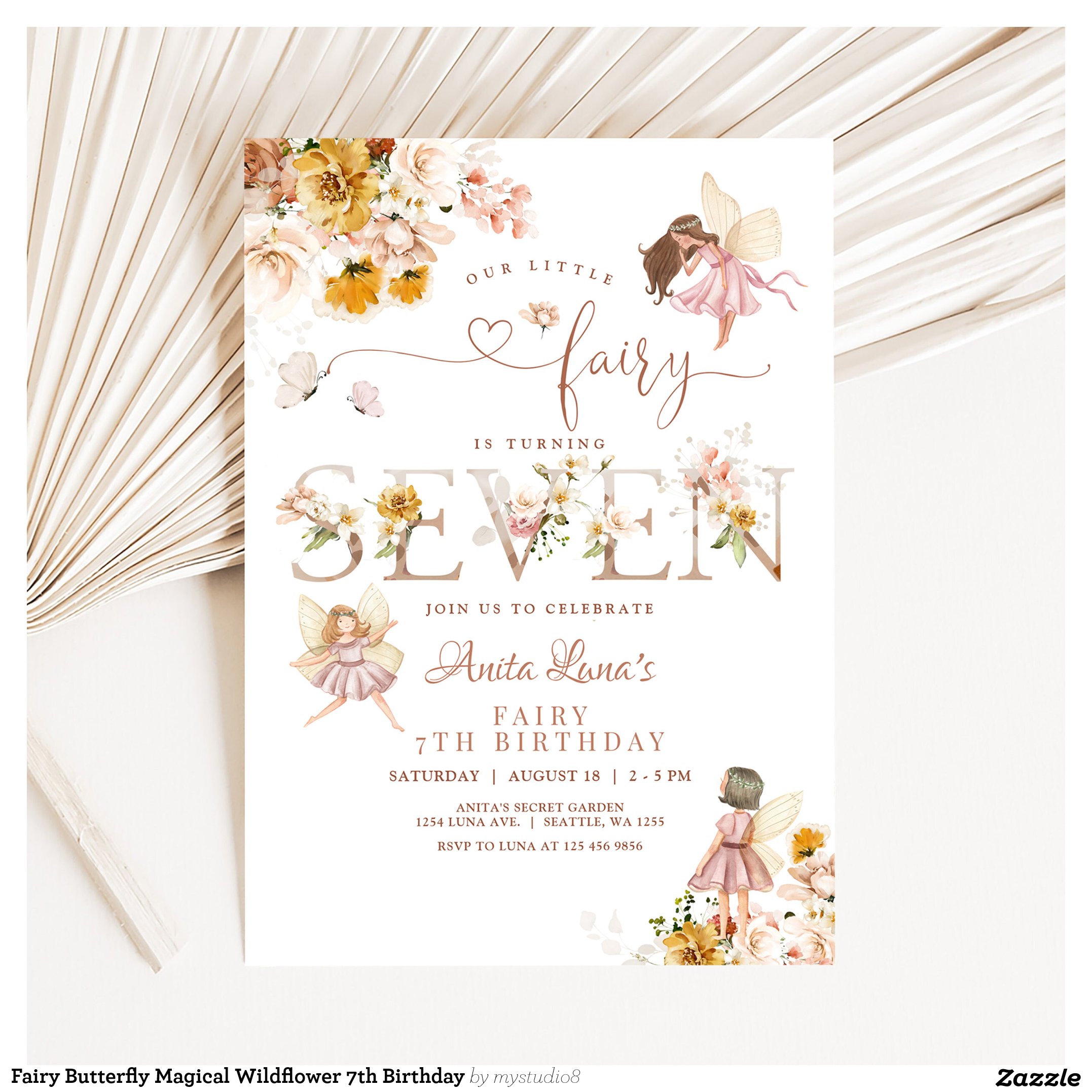 Fairy Butterfly Magical Wildflower 7th Birthday Invitation