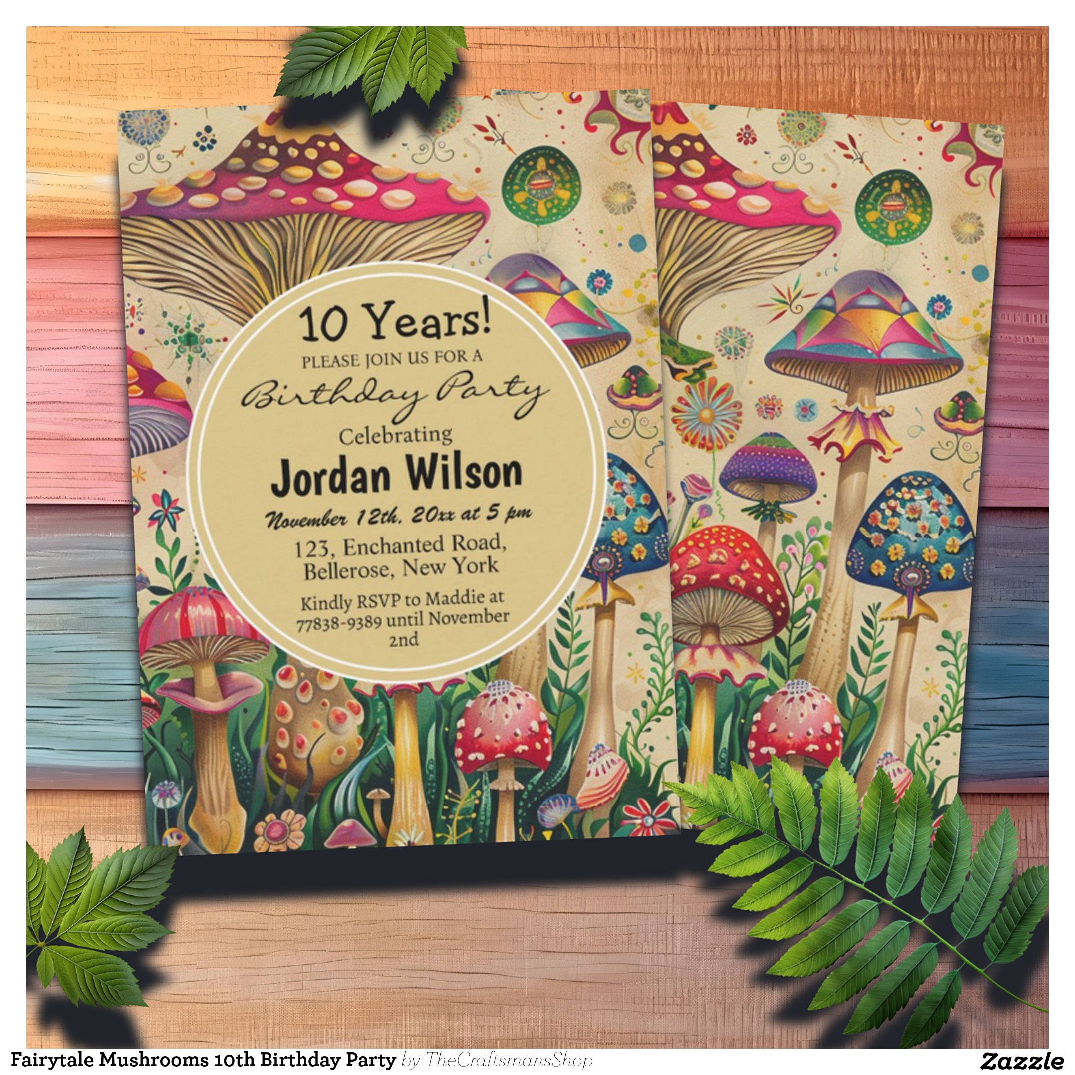 Fairytale Mushrooms 10th Birthday Party Invitation