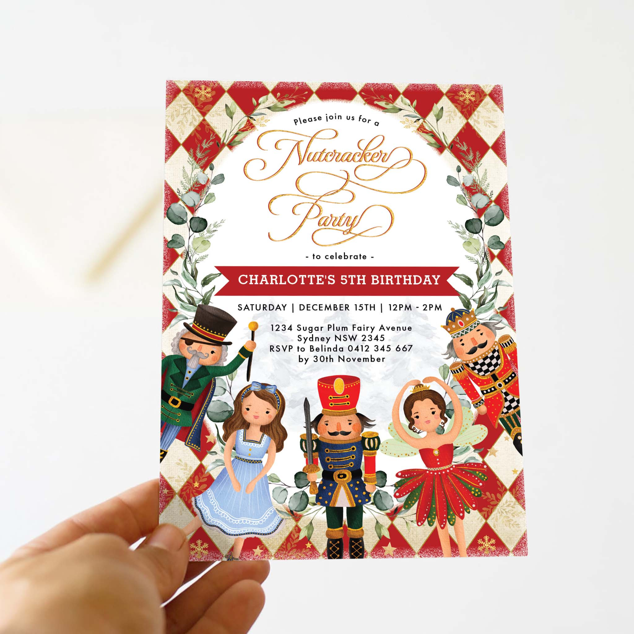 Festive Red Gold Nutcracker Party Birthday Invitation