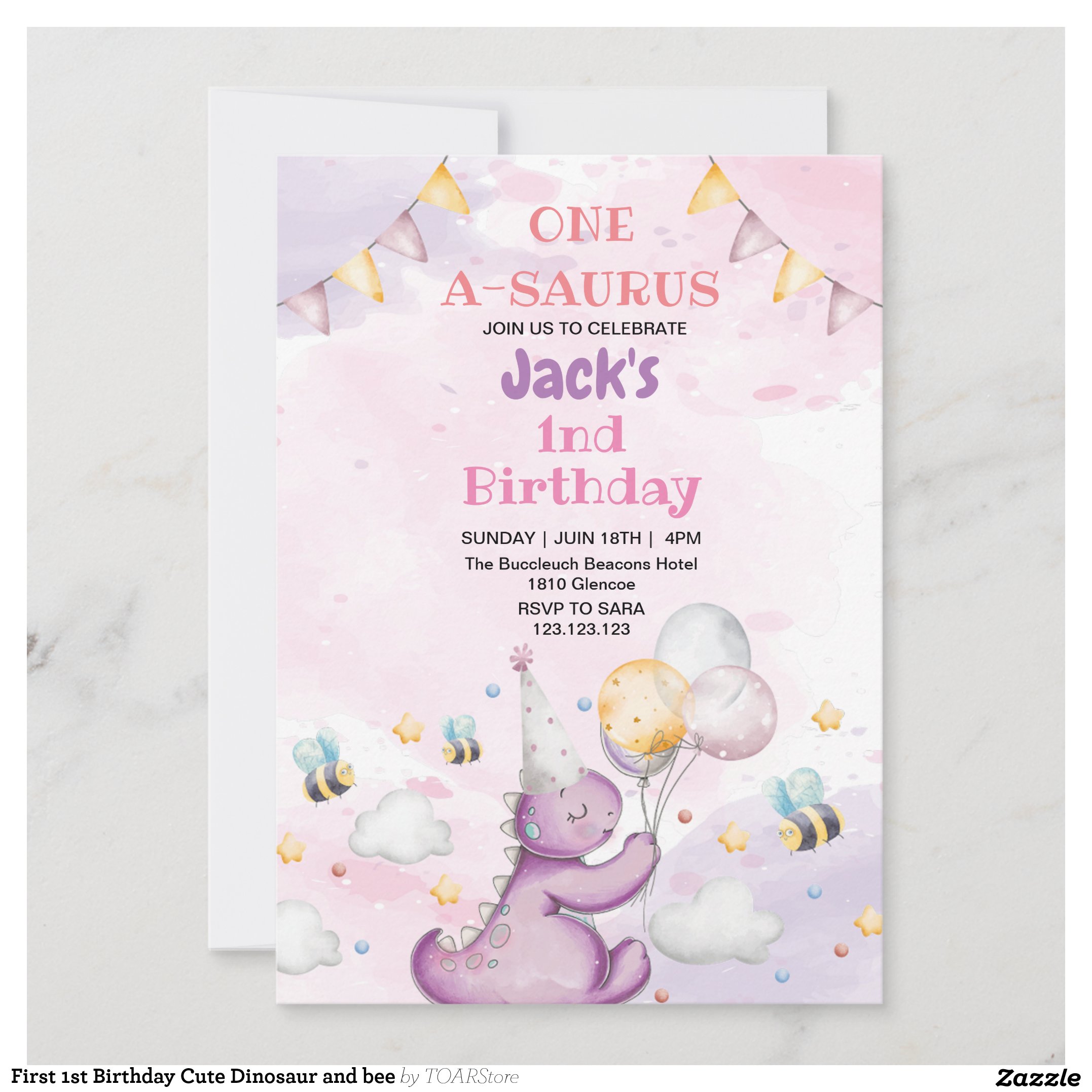 Be the first to review “First 1st Birthday Cute Dinosaur and bee Invitation”
