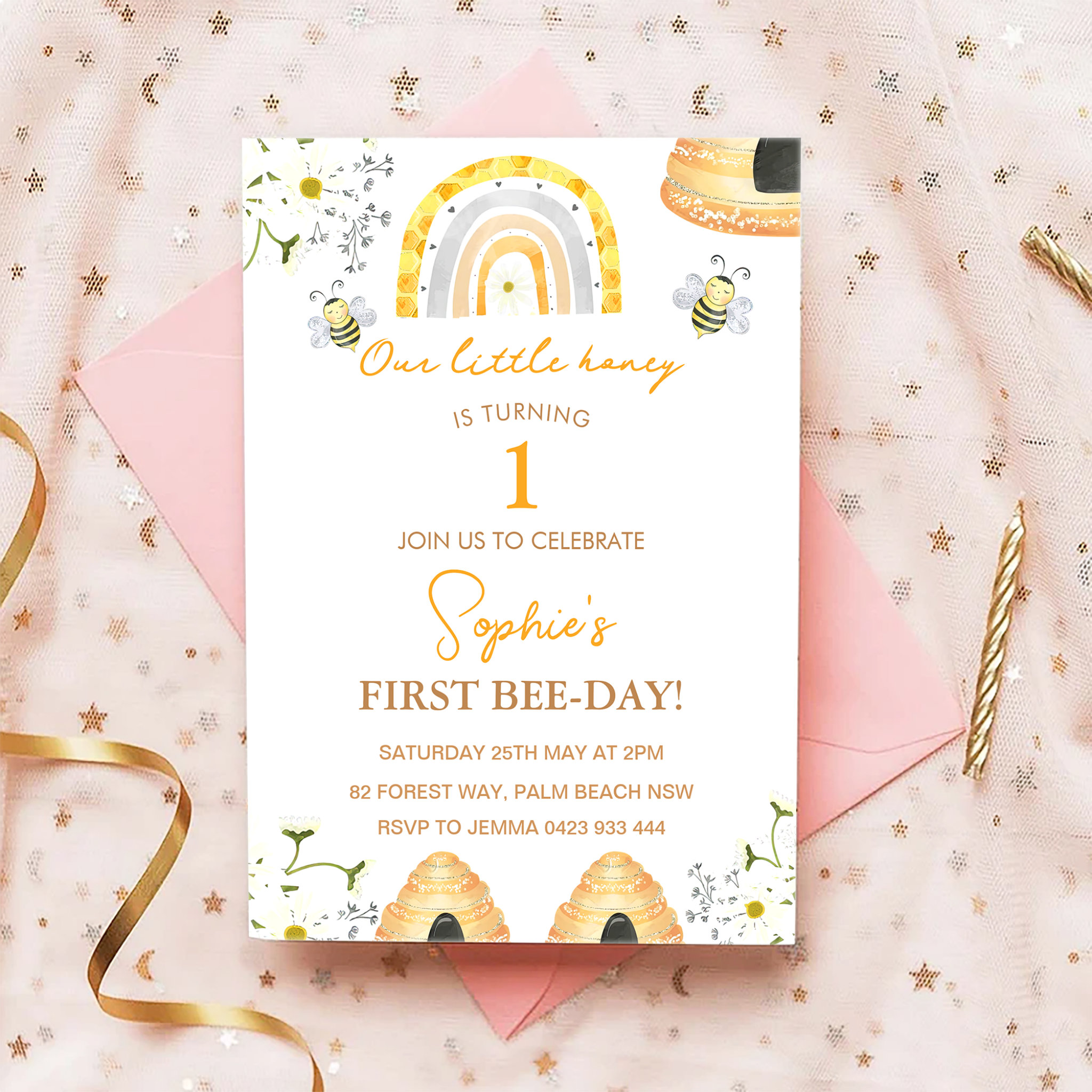 Be the first to review “First Bee Day Bumble Bee Girls Birthday Invitation”