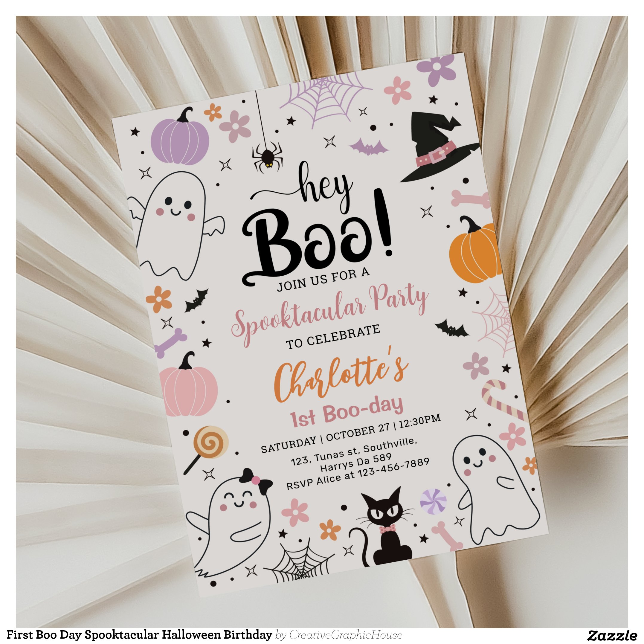 First Boo Day Spooktacular Halloween Birthday Invitation