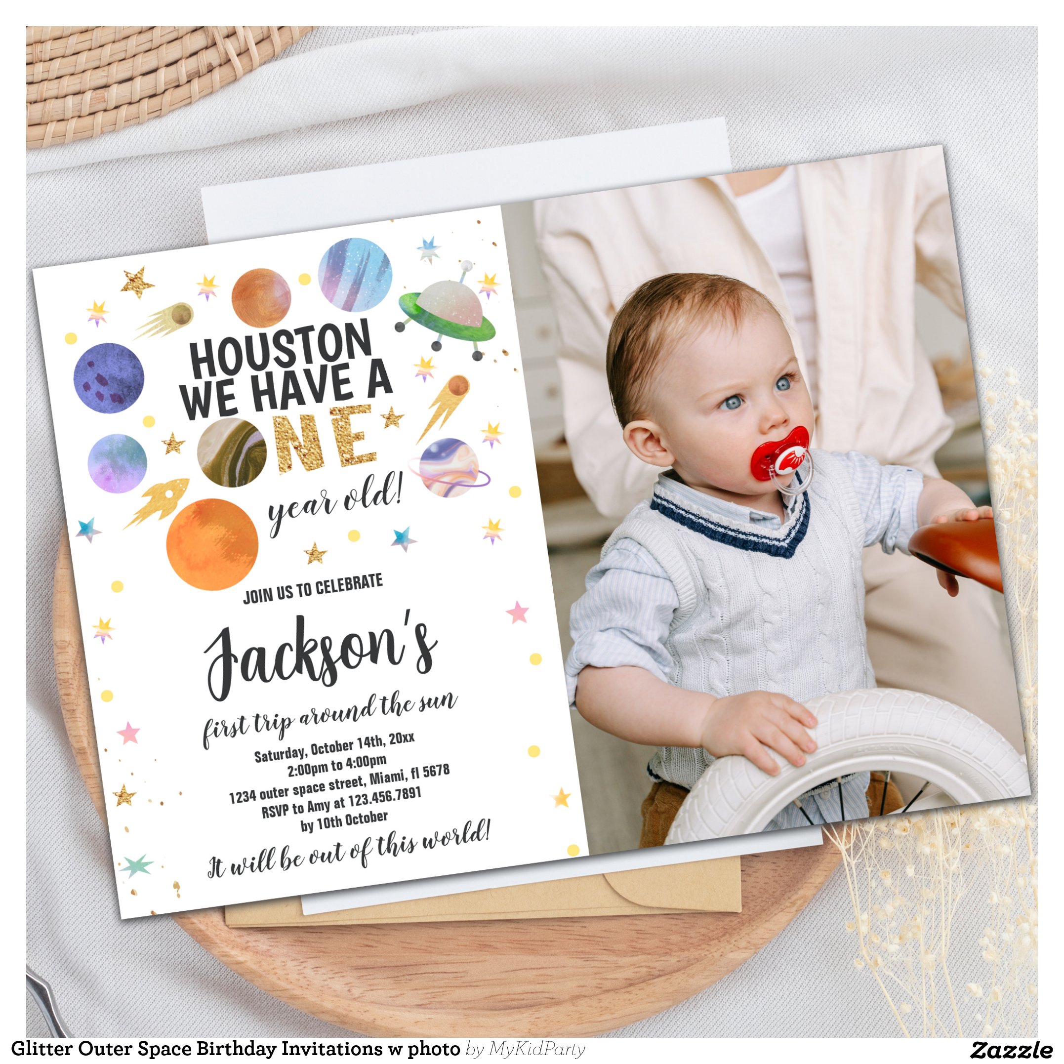 Be the first to review “Glitter Outer Space Birthday Invitations w photo”