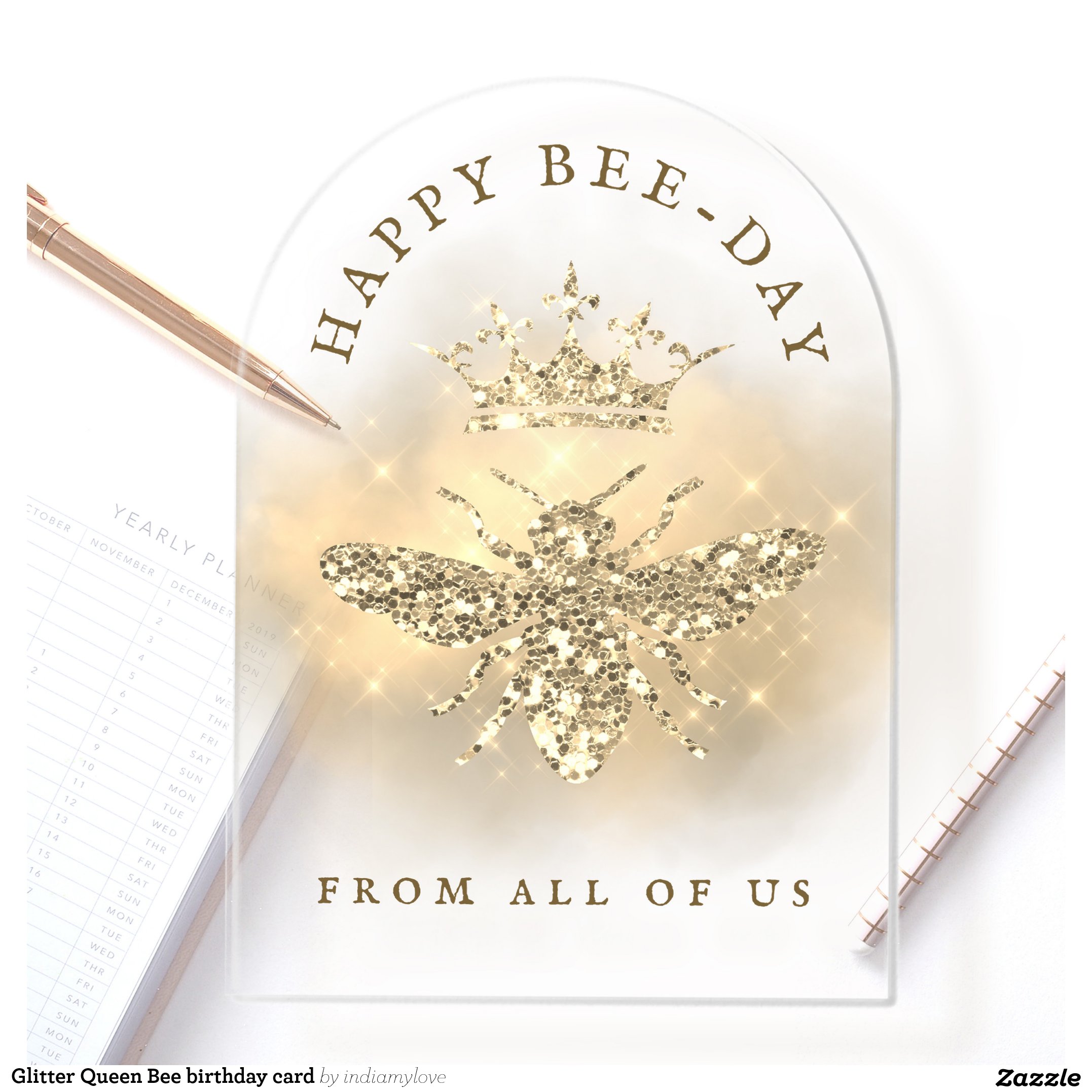 Glitter Queen Bee birthday card Acrylic Invitations