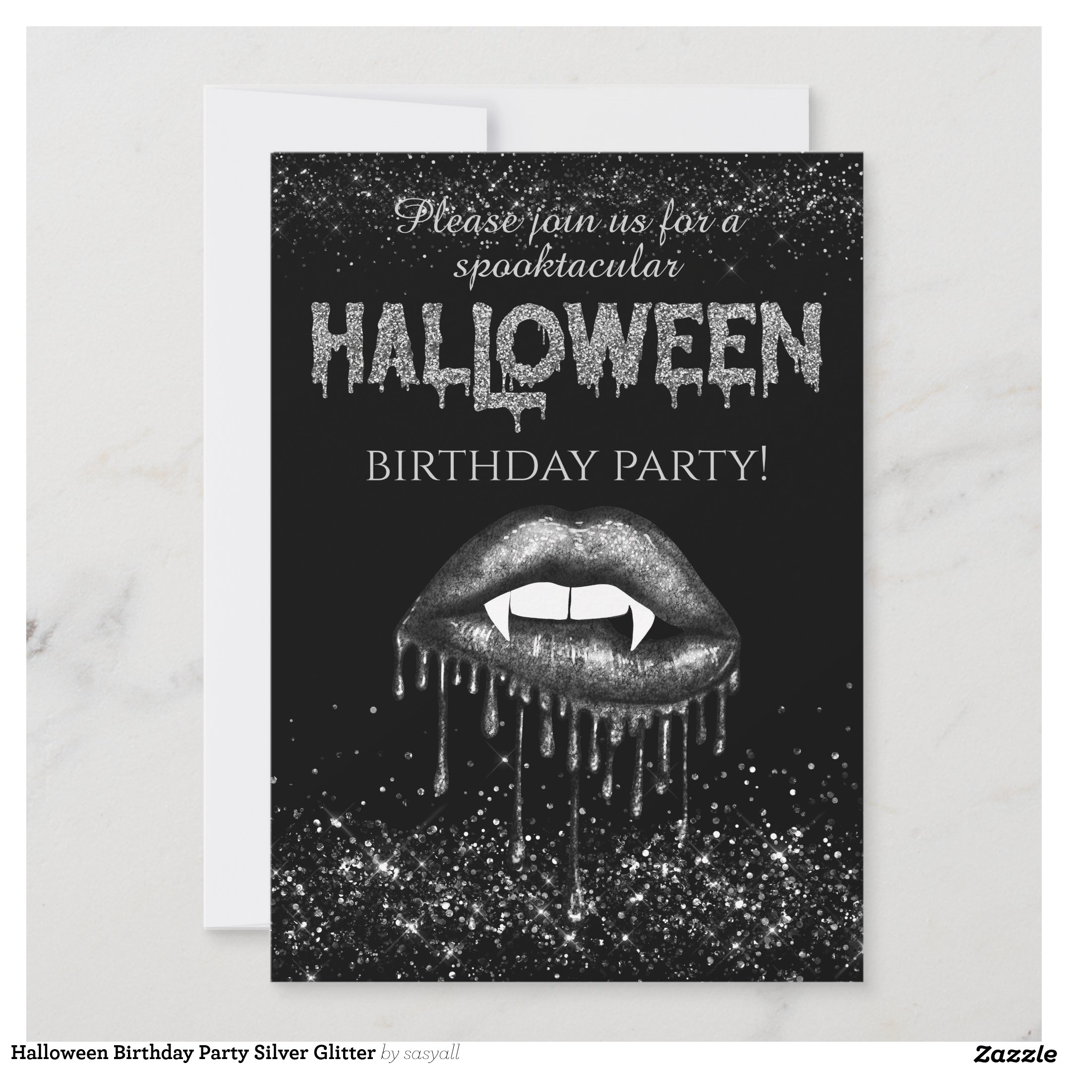 Be the first to review “Halloween Birthday Party Silver Glitter Invitation”