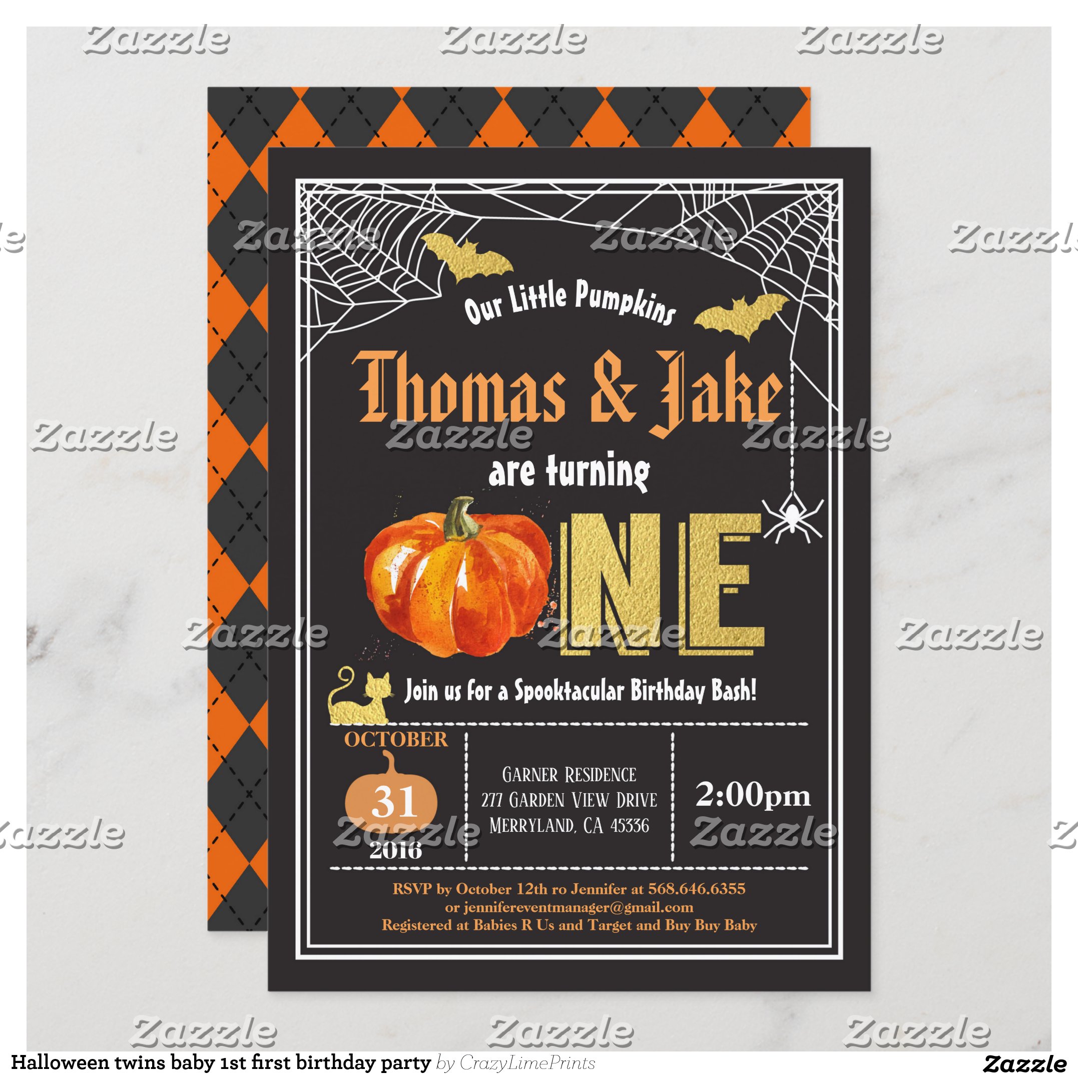 Be the first to review “Halloween twins baby 1st first birthday party invitation”