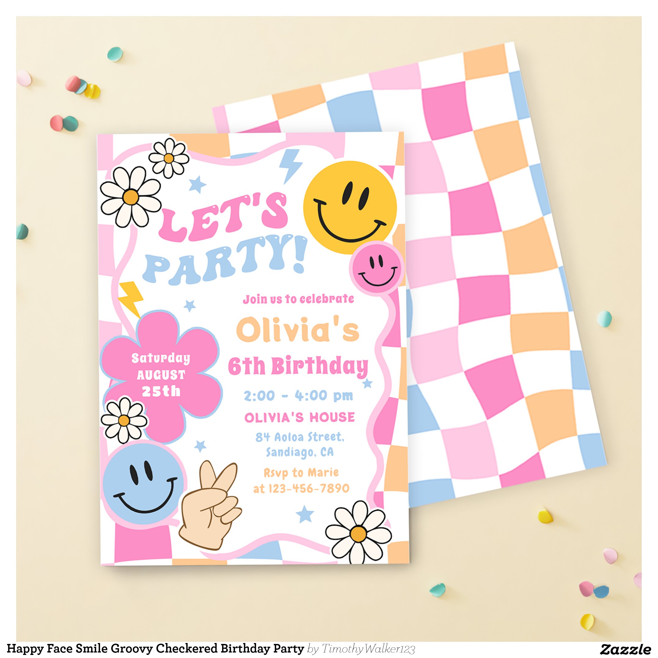 Be the first to review “Happy Face Smile Groovy Checkered Birthday Party Invitation”