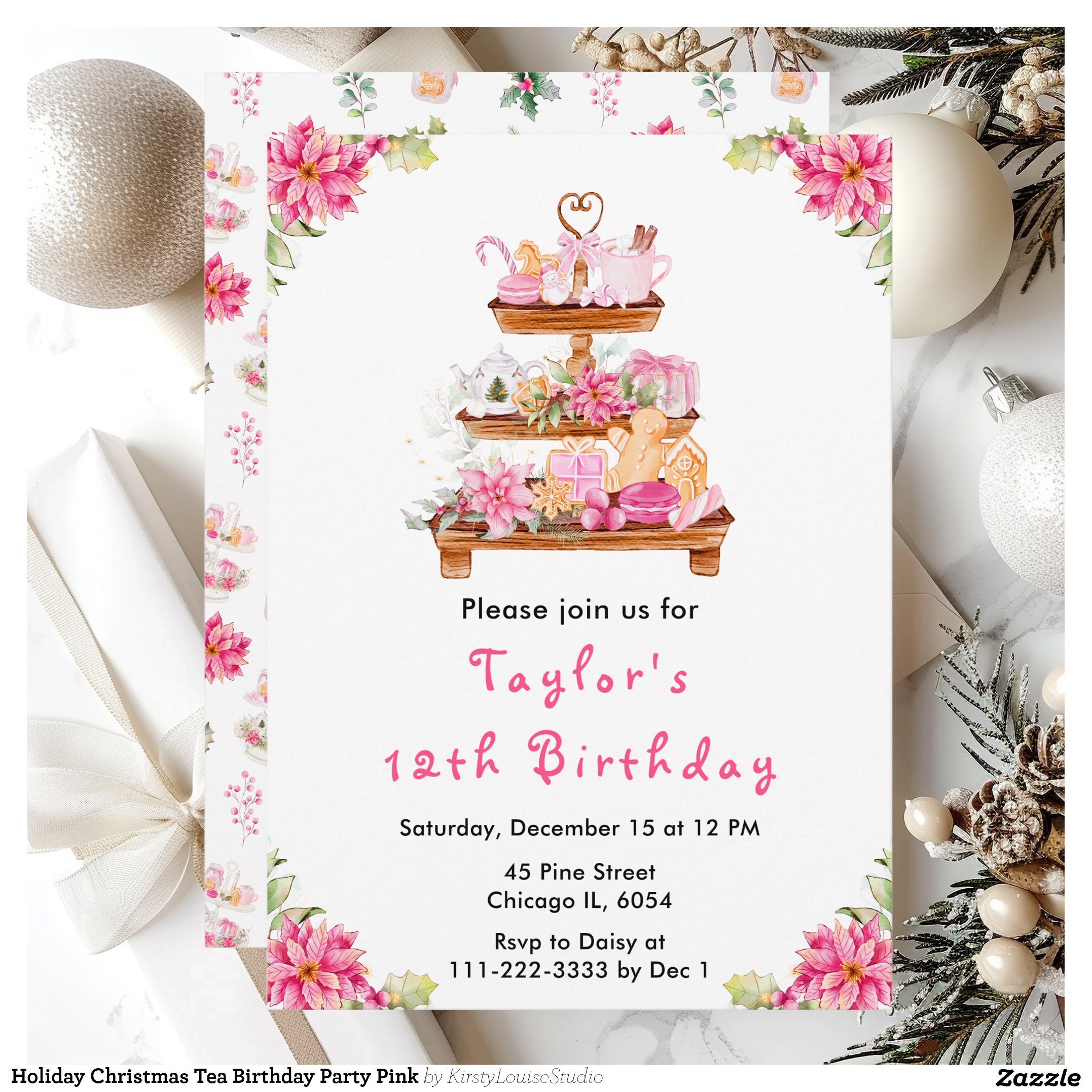 Be the first to review “Holiday Christmas Tea Birthday Party Pink Invitation”