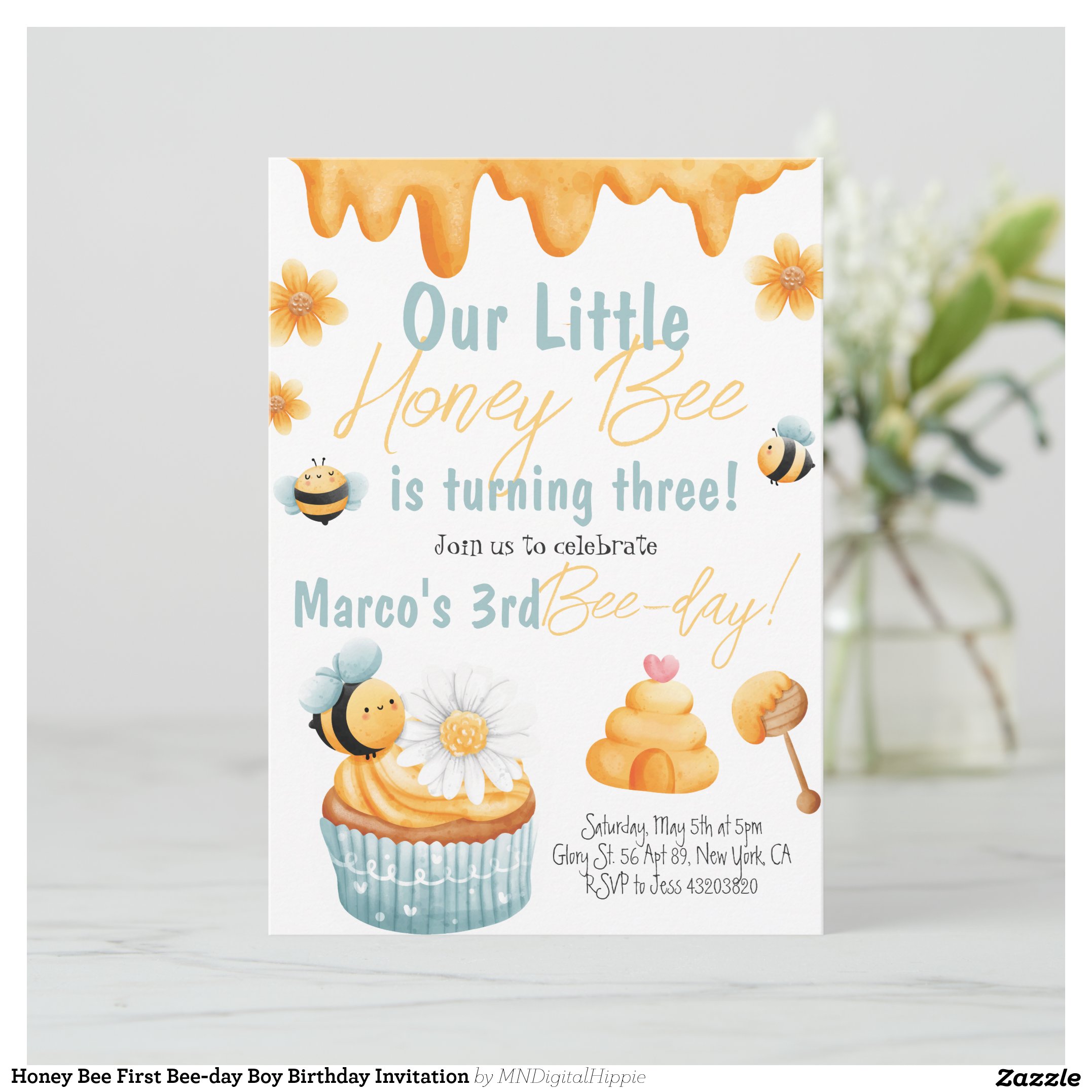 Be the first to review “Honey Bee First Bee-day Boy Birthday Invitation”