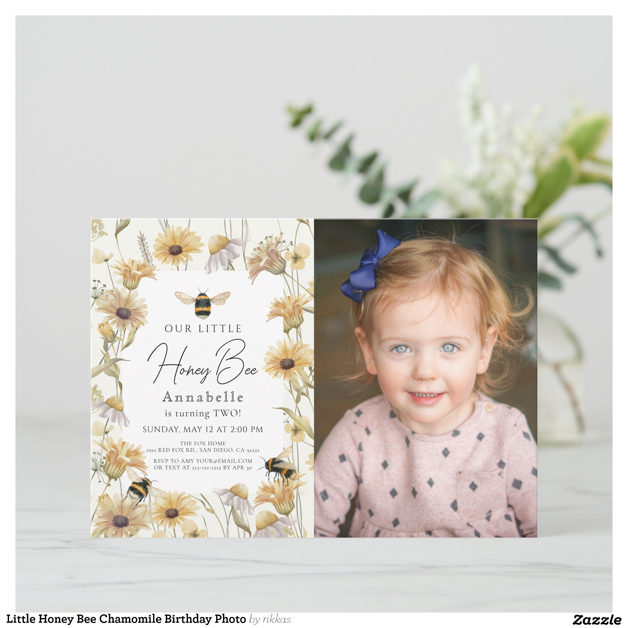 Little Honey Bee Chamomile Birthday Photo Invitation