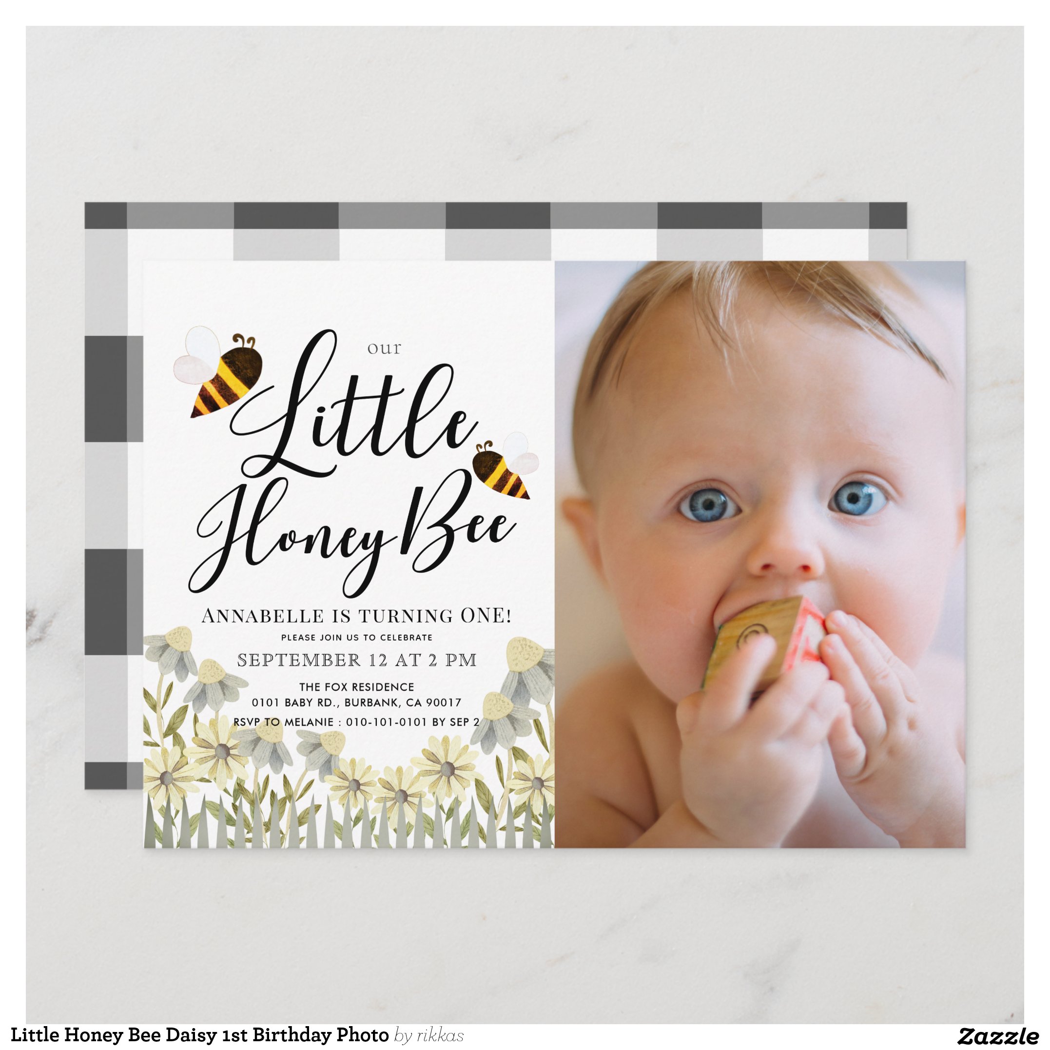 Little Honey Bee Daisy 1st Birthday Photo Invitation