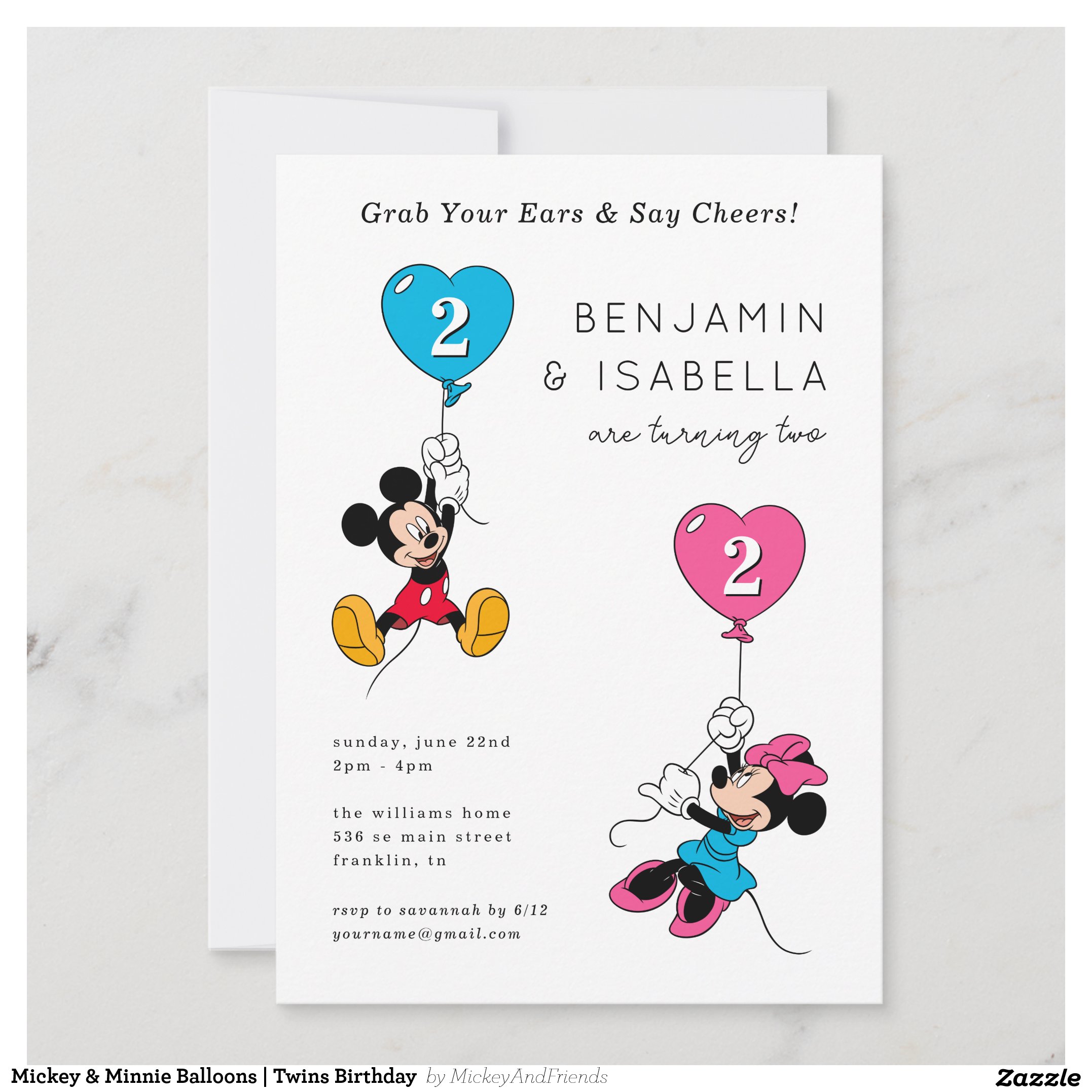 Mickey & Minnie Balloons Twins Birthday Invitation