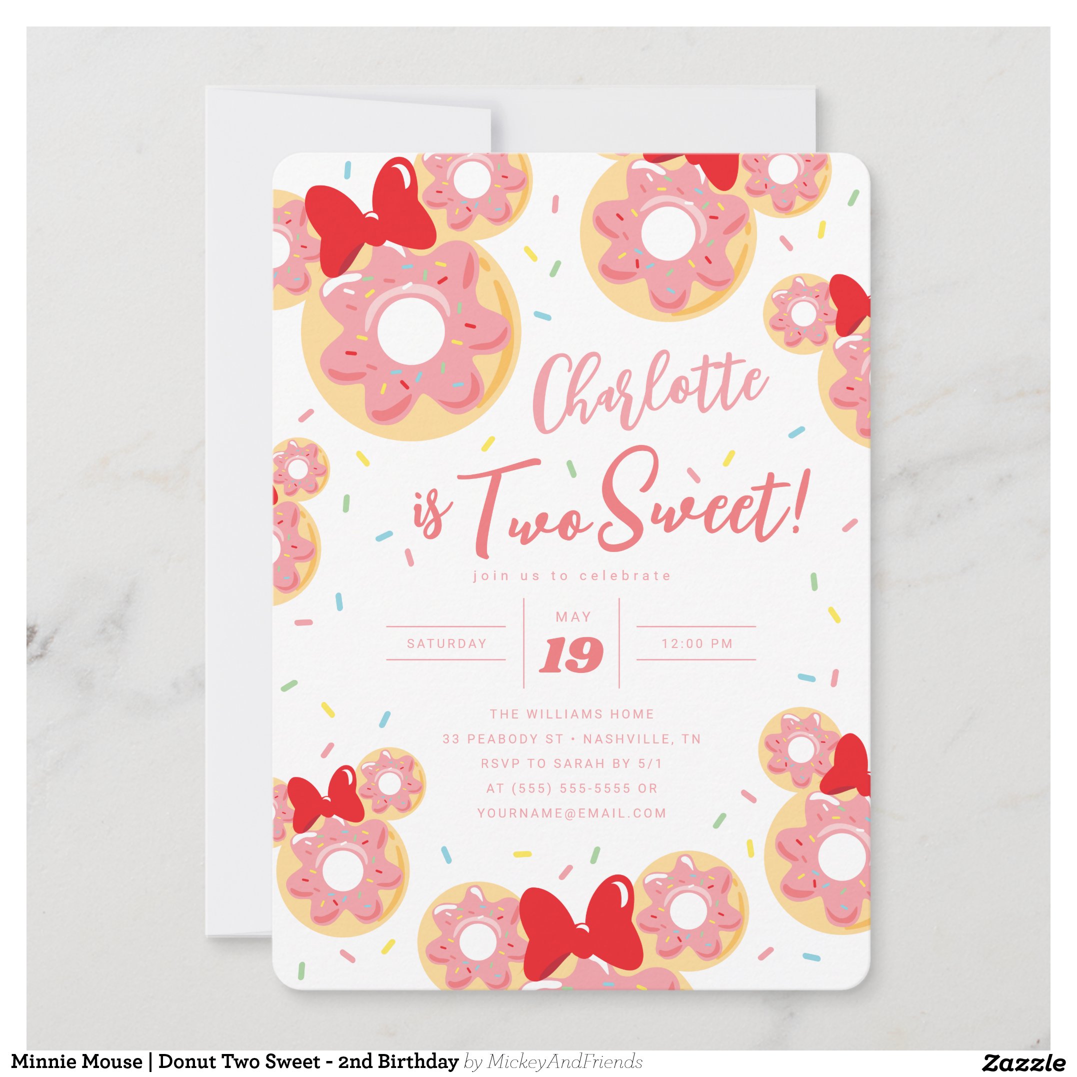 Minnie Mouse Donut Two Sweet – 2nd Birthday Invitation