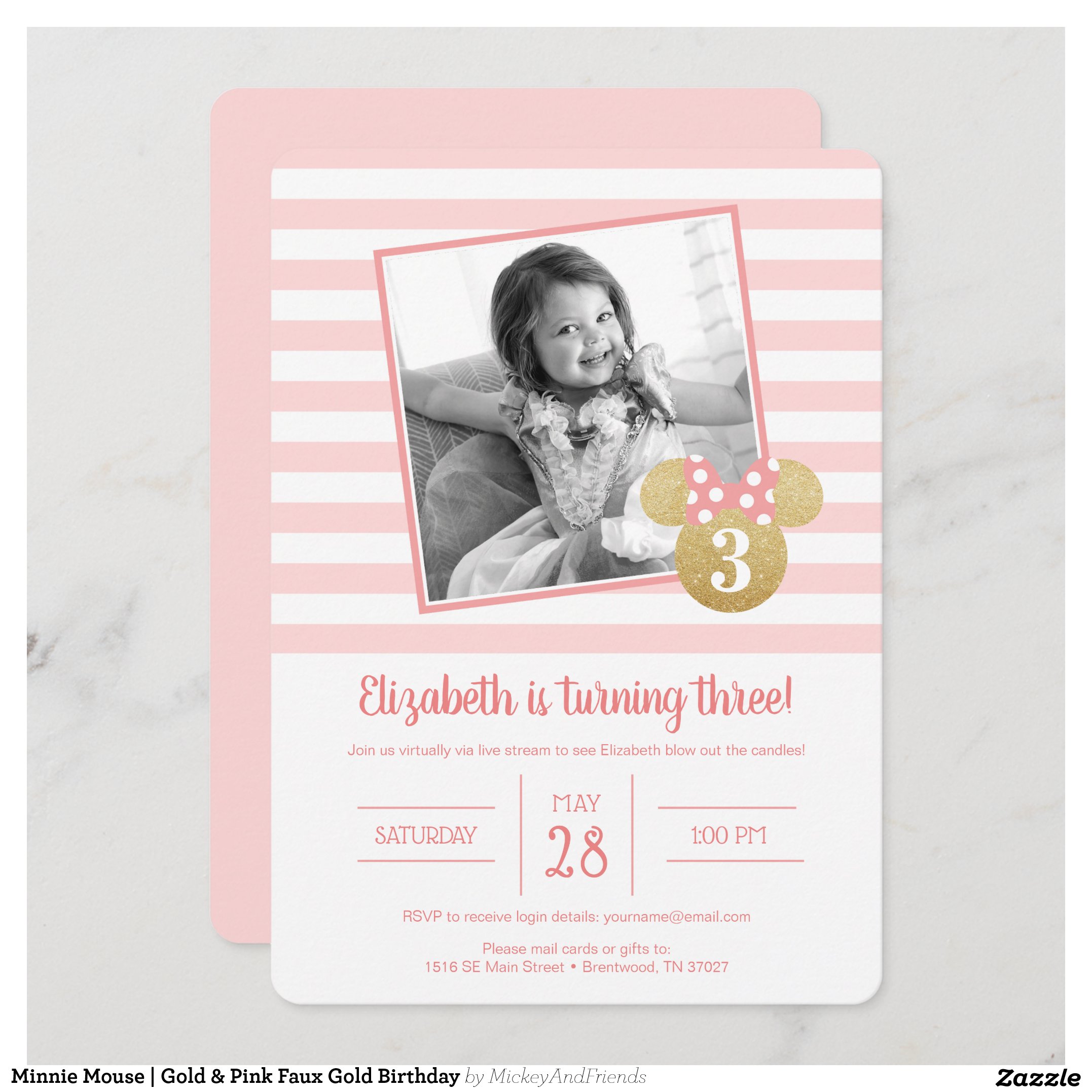 Be the first to review “Minnie Mouse Gold & Pink Faux Gold Birthday Invitation”
