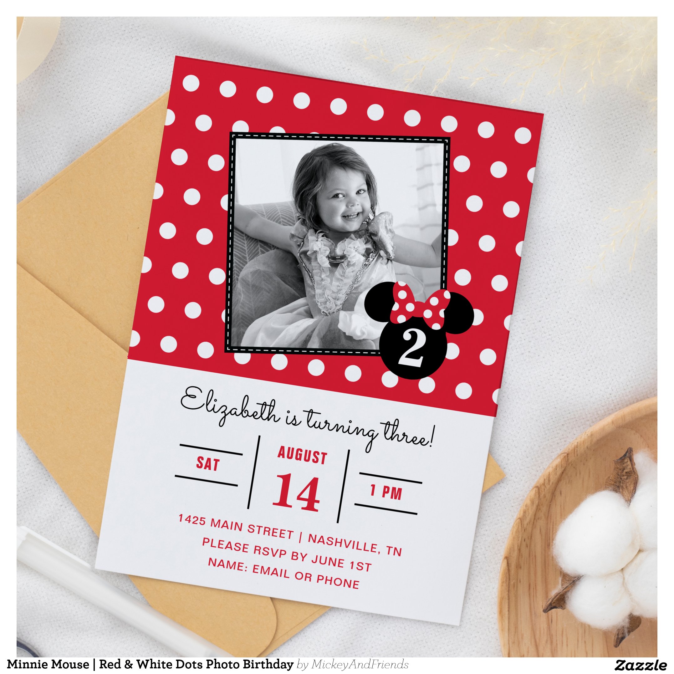 Minnie Mouse Red & White Dots Photo Birthday Invitation