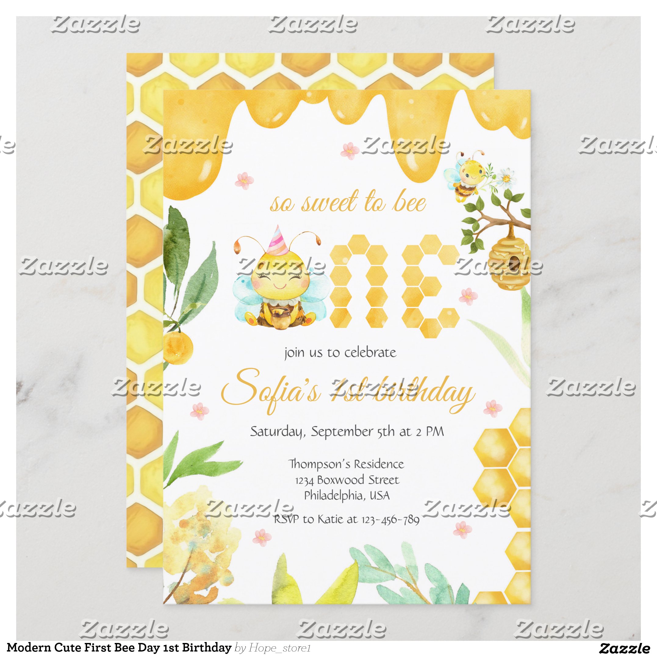 Be the first to review “Modern Cute First Bee Day 1st Birthday Invitation”
