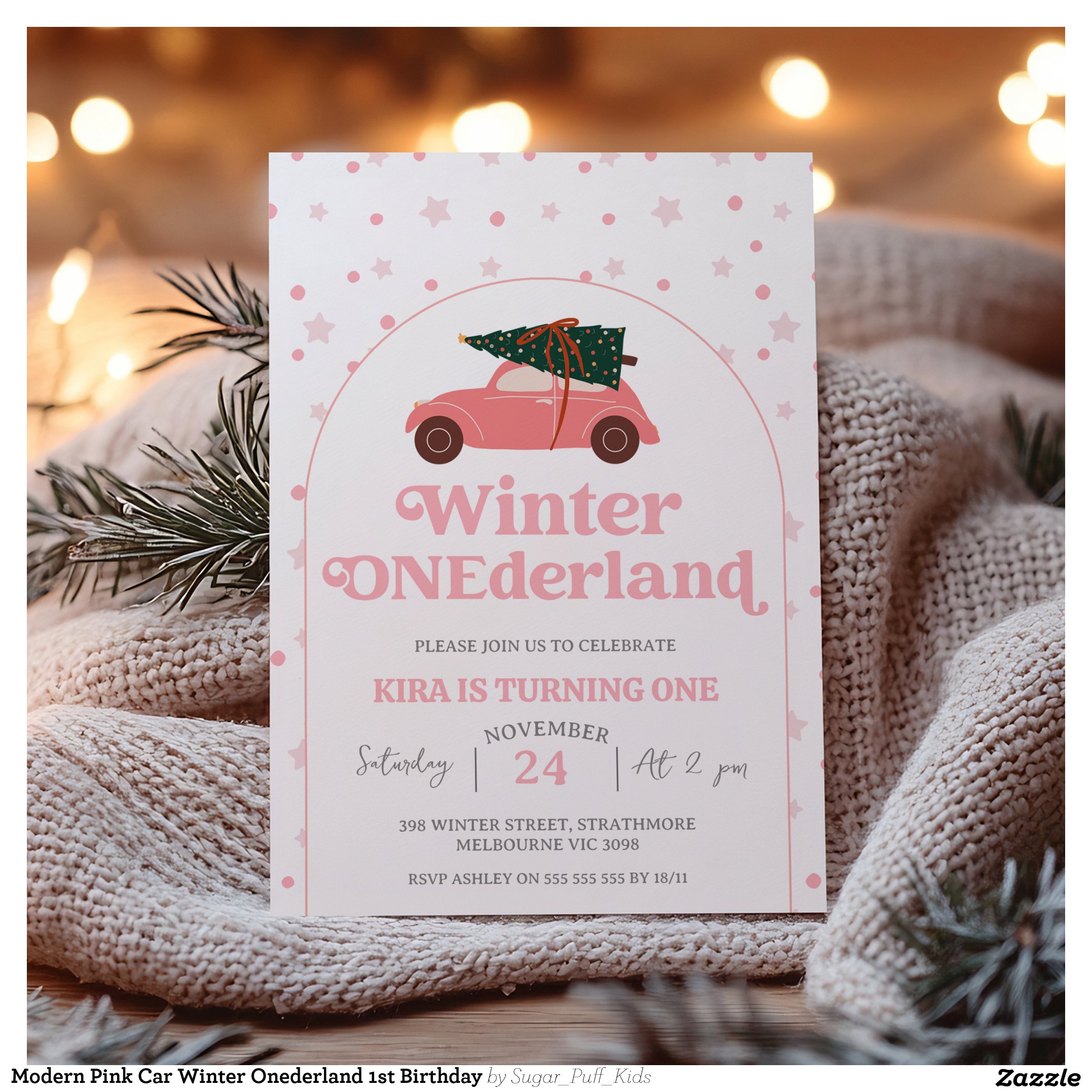 Be the first to review “Modern Pink Car Winter Onederland 1st Birthday Invitation”