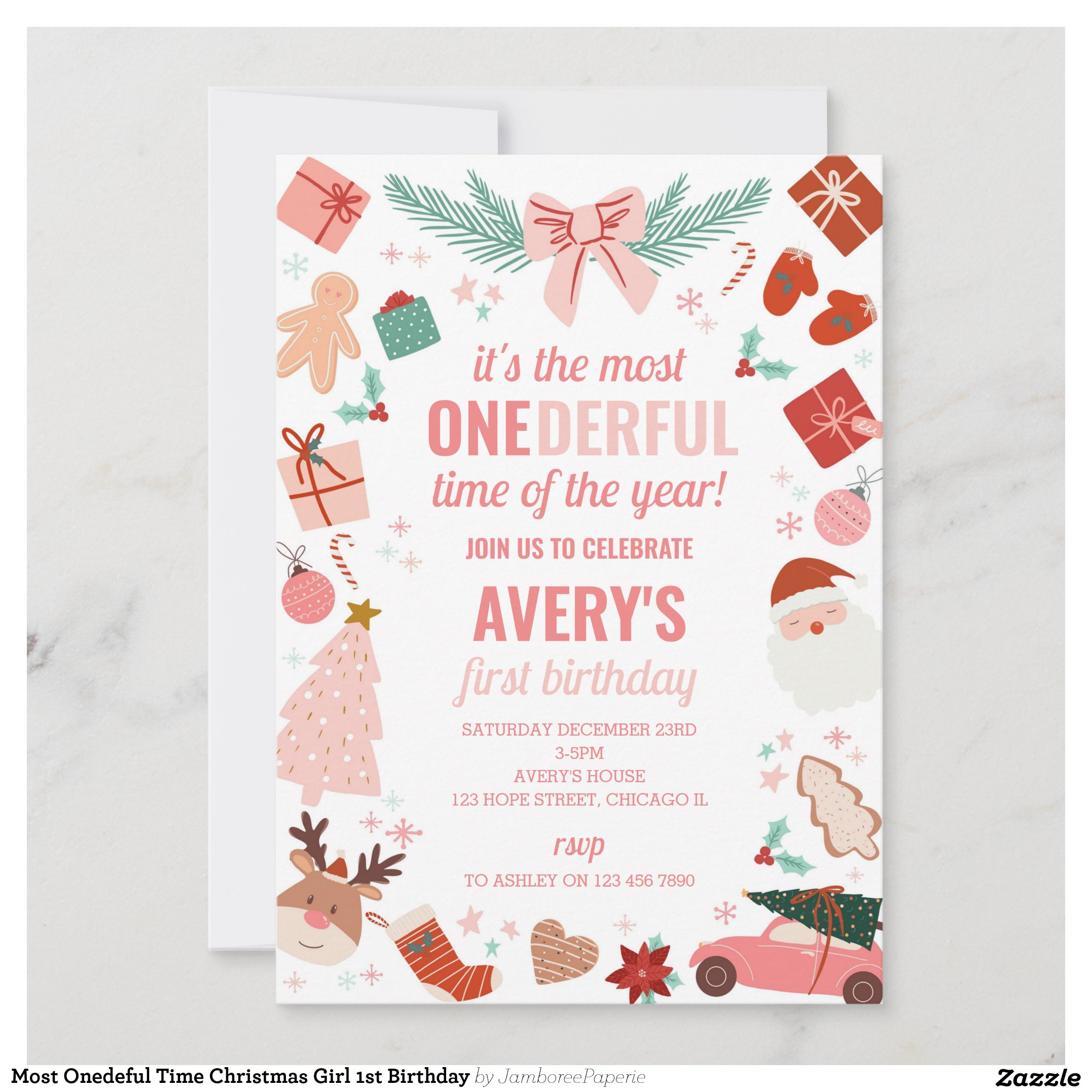 Most Onedeful Time Christmas Girl 1st Birthday Invitation