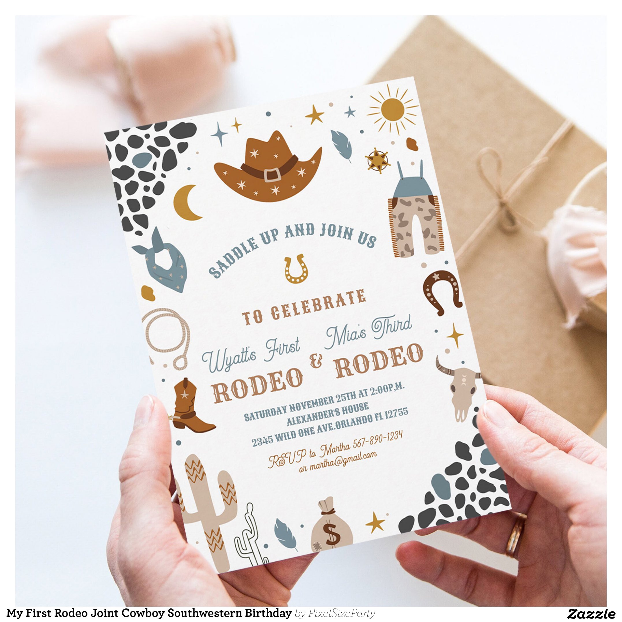 My First Rodeo Joint Cowboy Southwestern Birthday Invitation