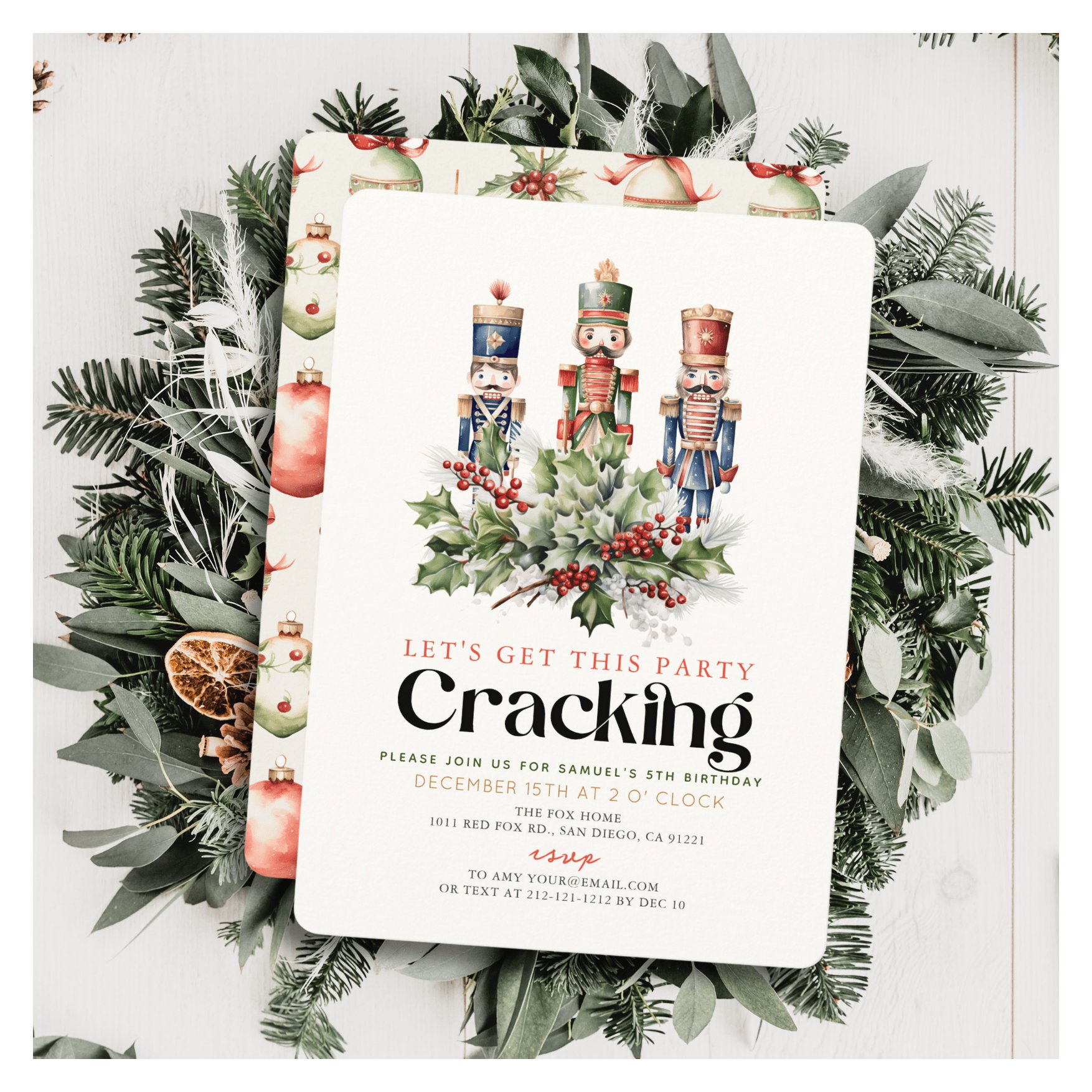 Nutcracker Cracking Christmas Holiday Birthday Invitation