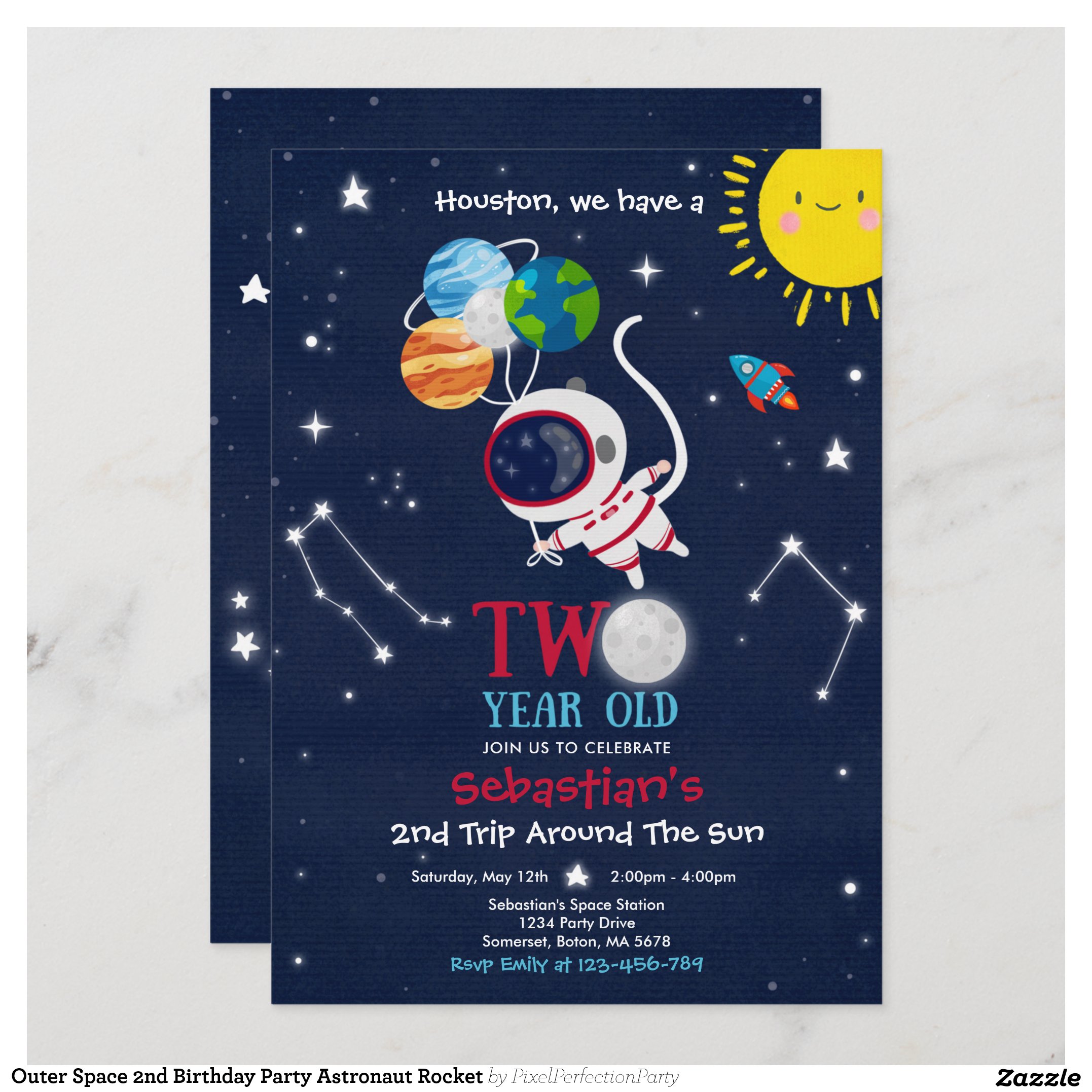 Outer Space 2nd Birthday Party Astronaut Rocket Invitation