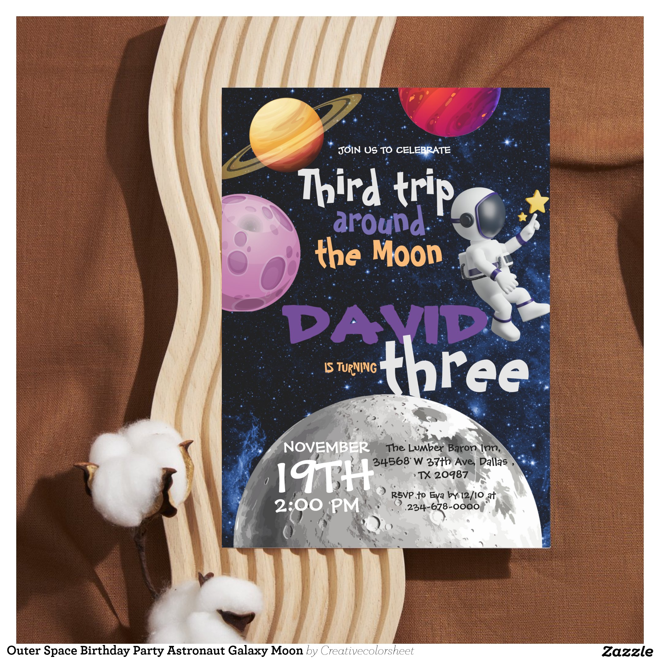 Outer Space Birthday Party Astronaut Galaxy Moon Invitation