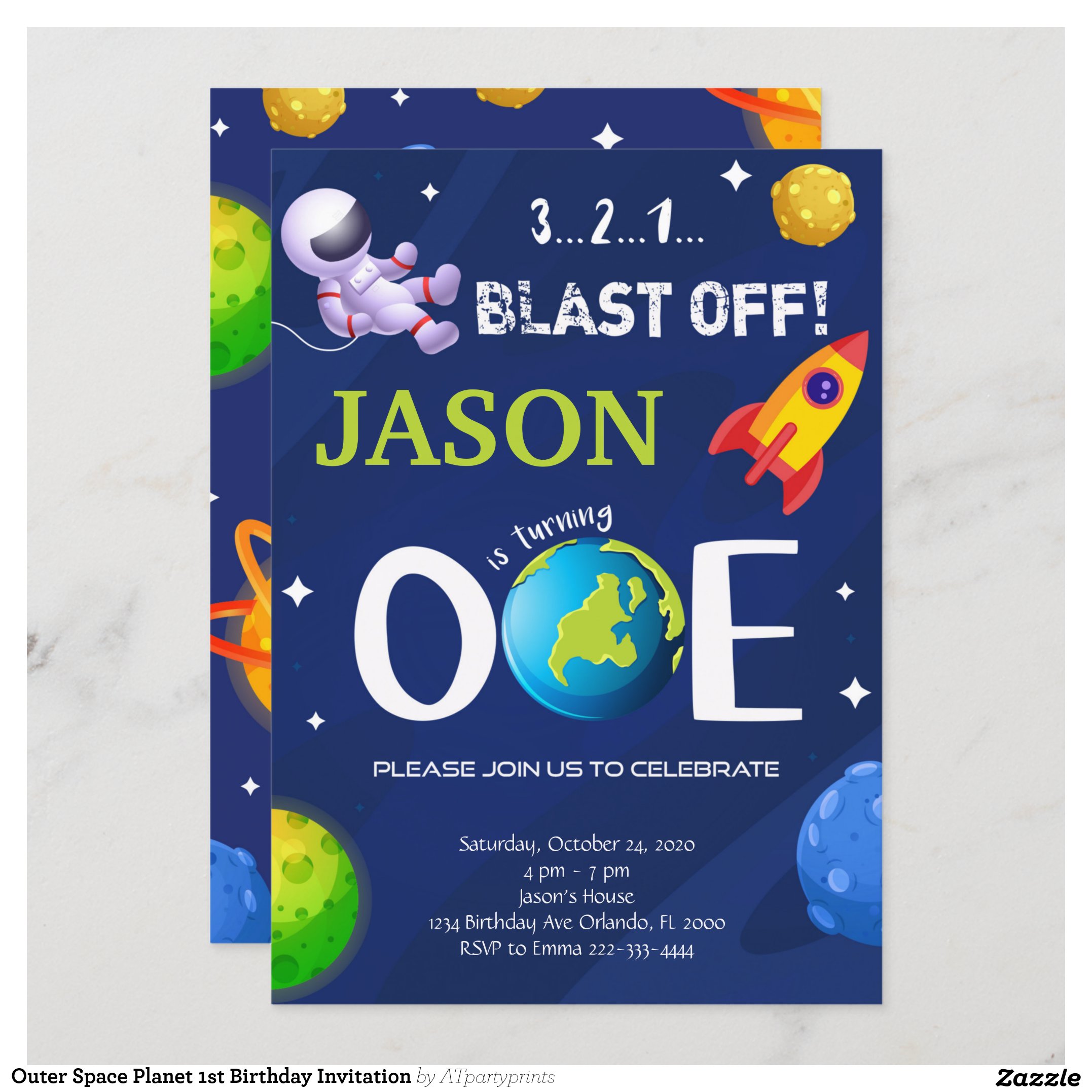 Be the first to review “Outer Space Planet 1st Birthday Invitation”