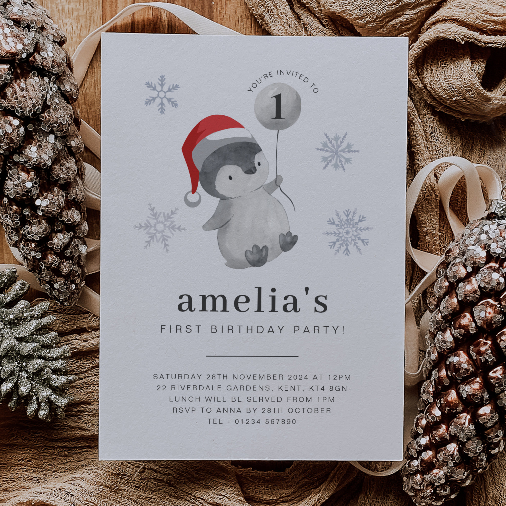Be the first to review “Penguin Balloon 1st Birthday Invitation”
