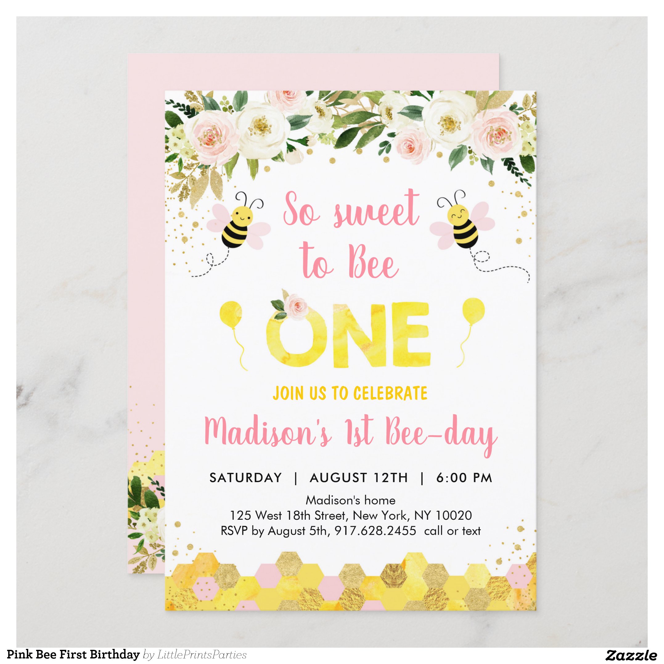 Be the first to review “Pink Bee First Birthday Invitation”